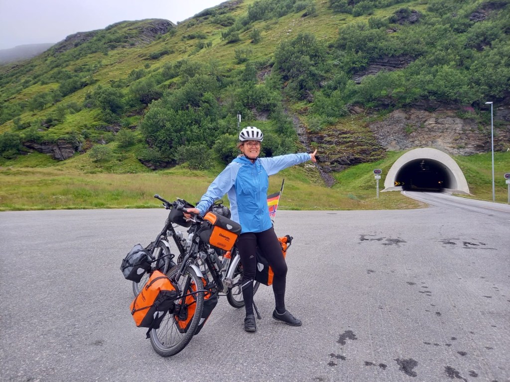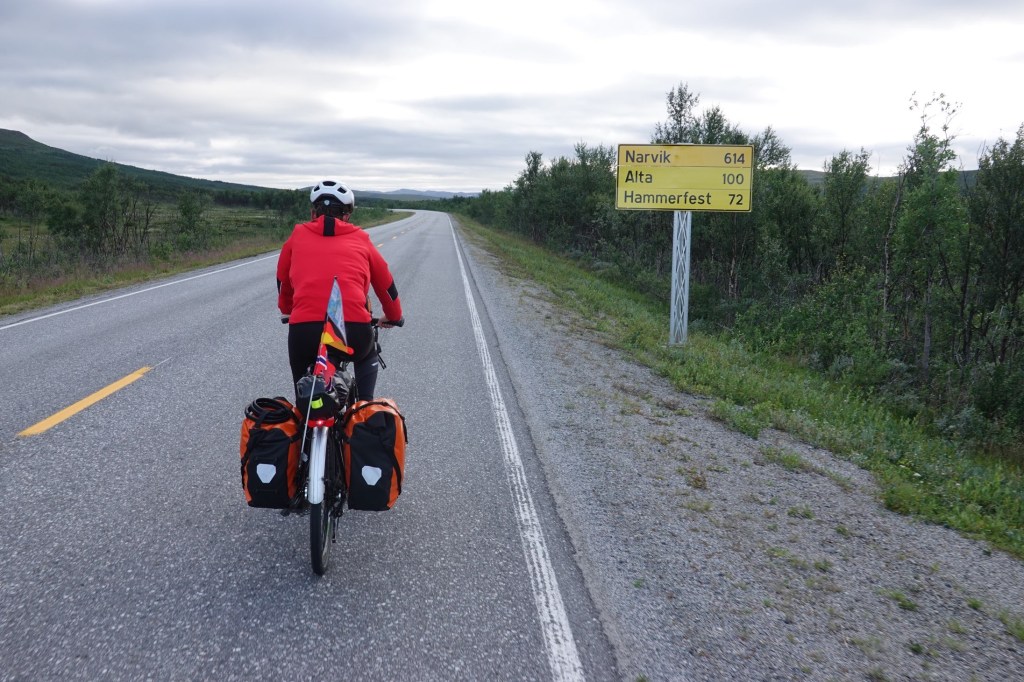 Hinter dem Tunnel erwartete uns eine traumhafte Küstenstraße, wir kamen flott voran und trafen unterwegs etliche Radfahrer auf dem Weg zum Nordkap. Einer sogar mit einem Handbike, der sich nur mit den Händen kurbelnd vorwärts bewegte, Respekt. Unseren ersten Campingplatz erreichten wir nach 106 km.