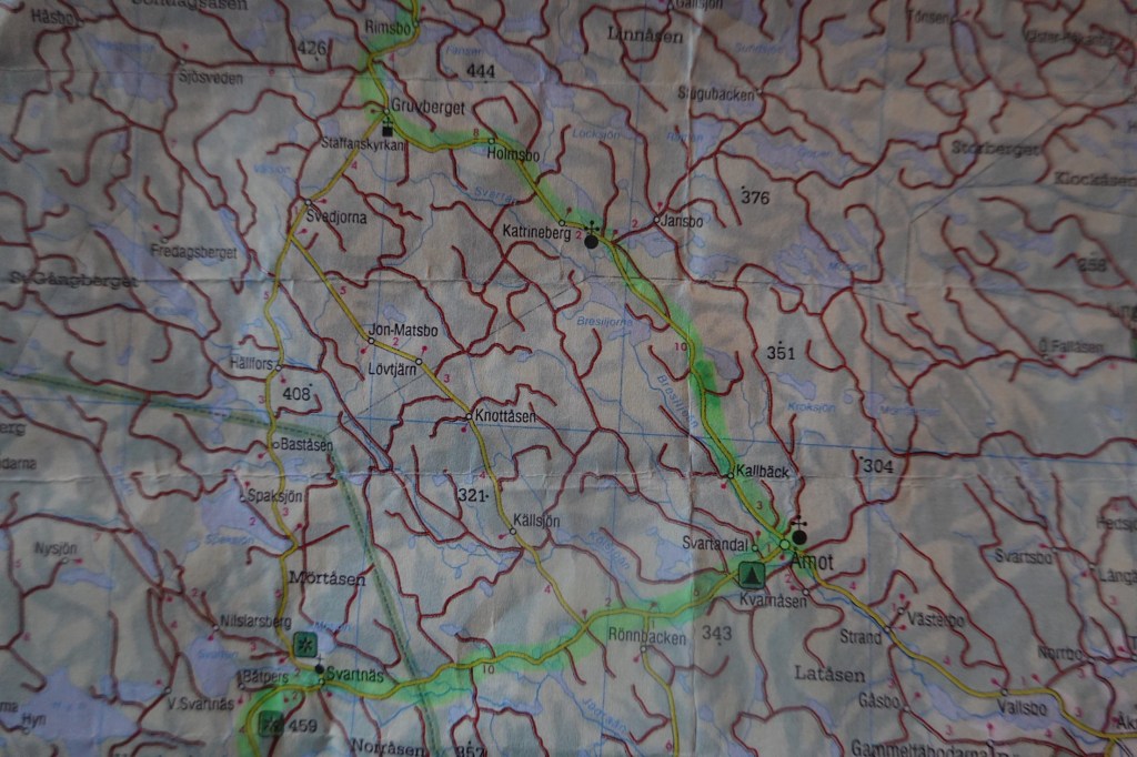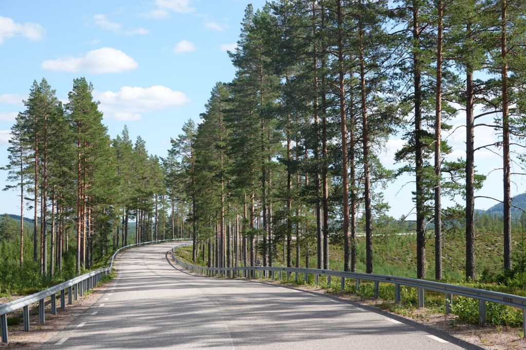 Gestern Abend hat Klaus lange an unserer heutigen Strecke geplant. Er hat sich alle Teilstrecken in Google Street View angesehen und genau nachgeprüft, ob sie asphaltiert sind oder nicht. Denn unsere heutige Strecke hat es in sich. Es geht richtig in die Berge, die gibt es auch südlich vom Norrlands Porten. Es geht stetig bergauf, glücklicherweise auf Asphalt.