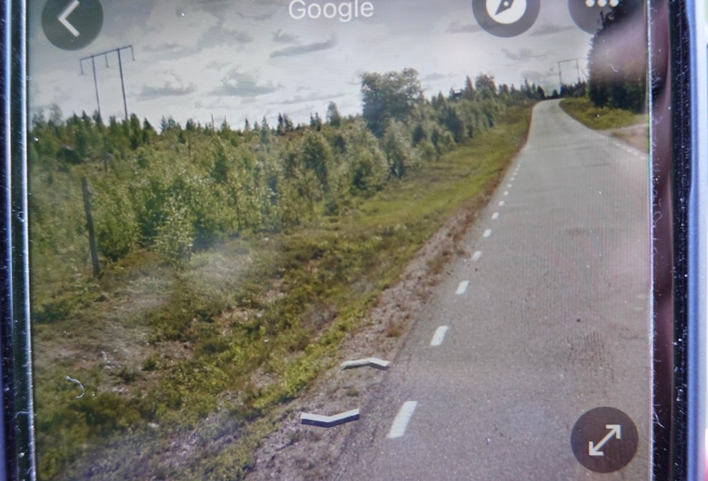 Dann, was ist das? Gravel! Das war doch in Street View anders dargestellt. Sabine vermutet, dass einfach irgendeine Straße aufgenommen wurde, der schwedische Wald sieht doch überall gleich aus. Klaus vergleicht auf seinem Handy. Der Beweis: genau die Stelle, wo wir gerade sind ist mit Belag fotografiert. Es könnte sein, dass auch in Schweden Straßen als Gravelroads zurückgebaut werden. Dies ist kostengünstiger und in Finnland gängige Praxis. Es hilft alles nichts, dann halt unbefestigt. Der Tag wird anstrengend .