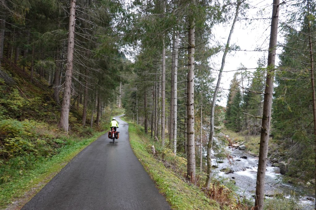 Was hatten wir schon alles befürchtet: Schnee im Oktober auf über 1000 m Höhe, wir schiebend durch den Schnee auf steilen Radwegen oder Straßen. Die Durchquerung der Alpen war immer so ein Knackpunkt. Sind wir nicht zu spät dran? Im September hat es schon mal mächtig geschneit in den Alpen. Doch heute scheint die Sonne, es ist wärmer als vor ein paar Wochen in Deutschland , Schnee liegt nur ab 2500 m Höhe. Der Herbst zeigt sich von seiner besten Seite.