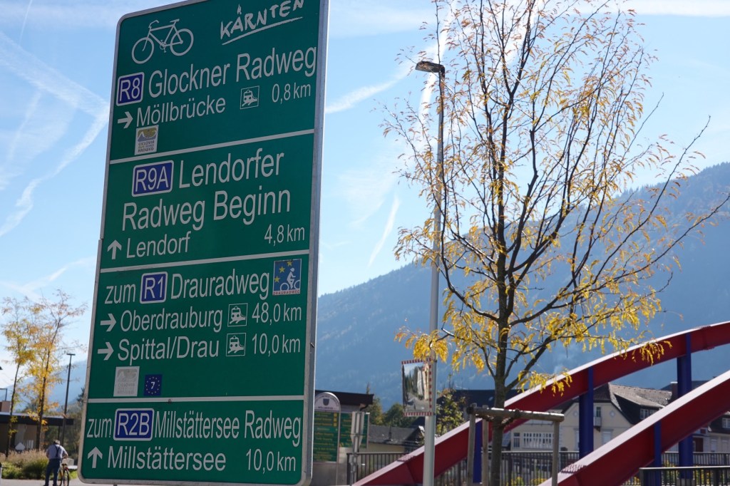 Super, die ersten 20 km geht es ab Mallnitz bis ins Mölltal steil bergab. Gut, dass nicht viele Autos die Serpentinen hinab fahren. Wir genießen die Abfahrt bis Möllbrücke. Dann wechseln wir den Fluss. Es geht an die blaue Drau. Die Drau kennen wir schon von unserer Tour vor zwei Jahren. Damals sind wir in Richtung Kärntner Seen stromabwärts gefahren, nun in Richtung Dolomiten stromaufwärts.