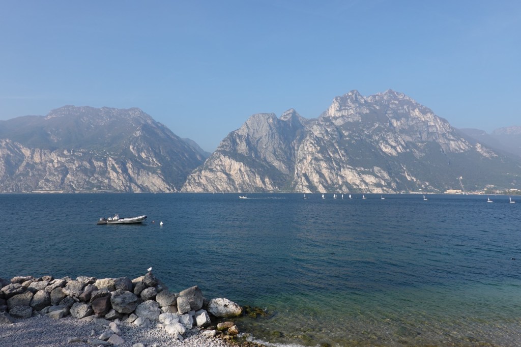 Mit Sarahs Ankunft gibt es auch richtiges Gardaseewetter. Der Nebel löst sich auf und es weht endlich ein mäßiger Wind. Die Surfer nutzen die Gelegenheit nach der Flaute gestern. Und wir machen erst einmal einen Stadtbummel. Wir wollten eigentlich im See baden, doch jetzt ist uns zu viel Wind. Der hält aber nicht lange an. Jetzt oder nie. Das Wasser ist gar nicht so kalt. Es ist angenehm und glasklar. Während unserer anschließenden Wanderung gibt es viel zu erzählen. Wir genießen die Zeit als Familie beim Abendessen im Appartement.