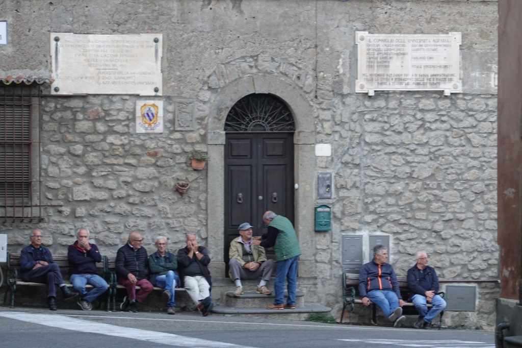 Wir schrauben uns Meter für Meter hoch bis zum Ort. Im historischen Ortskern testet Klaus zu Fuß, wie wir zu unserer Wohnung gelangen. Es geht durch dunkle Gassen hinter einer alten Burg. Viele Häuser sehen aus, als würden sie gar nicht mehr bewohnt. Unser Apartment finden wir hinter einer alten Holztür in einer engen Gasse. Der alte Ortskern ist mit einem Aufzug erreichbar. Und durchaus bewohnt. Alte Männer treffen sich abends auf einer langen Bank und genießen zusammen die Aussicht von ganz oben.