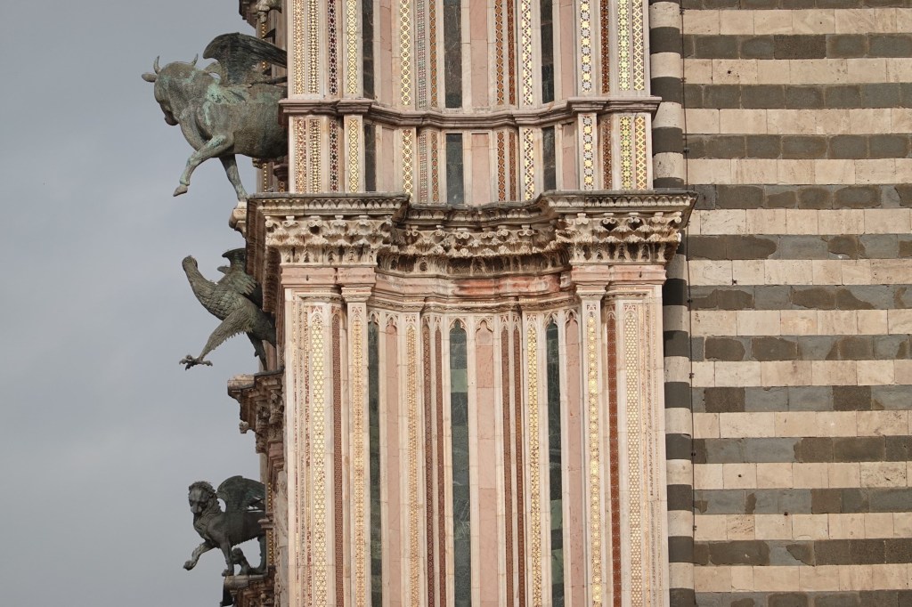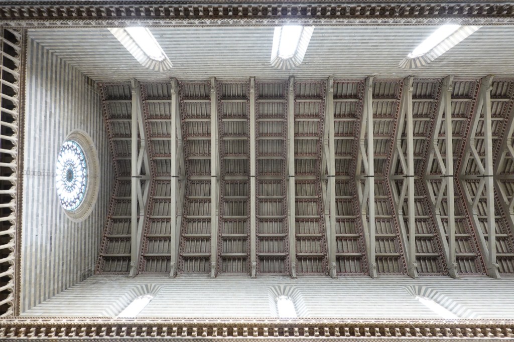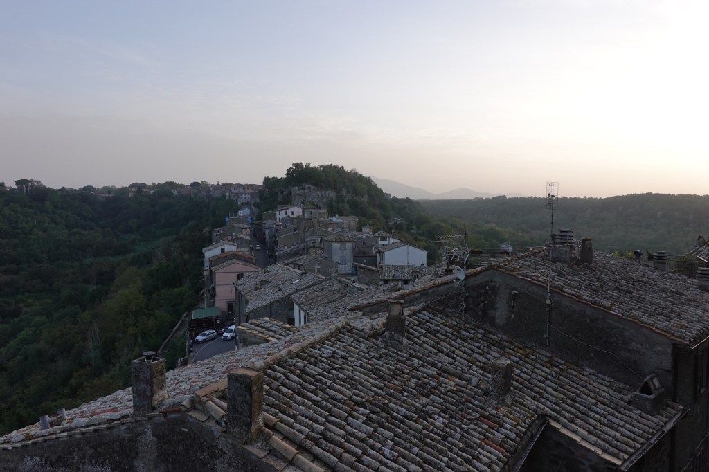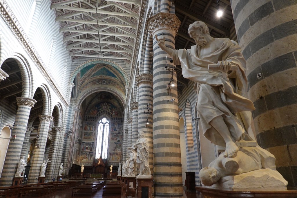 Unser Tagesziel ist heute gar nicht so weit, nur ca. 40 Km. Wir müssen uns die Strecke nach Roma aufteilen. Und eine Unterkunft finden. Hier ist touristisches Niemandsland. Es gibt keine Campingplätze und wenig Hotels, Apartments etc.. Im Internet finden wir eine kleine Wohnung im historischen Ortskern von Bomarzo. Nie gehört. Es ist kein touristisches Ziel in Umbrien. Aber wir wollen ja auch mal kennenlernen, wie es in den kleineren Orten so ist. Doch zuerst haben wir noch Zeit, Orvieto am Tag zu besichtigen. Von außen war der Dom in der Nacht eindrucksvoller. Doch nun können wir ihn auch innen bewundern. Wir sind fast alleine in der riesigen Kathedrale. Die Touristenströme kommen erst später. Auch auf dem Uhrenturm sind wir alleine. Die Aussicht auf die Dachlandschaft der Stadt und die umgebenden Berge ist grandios.