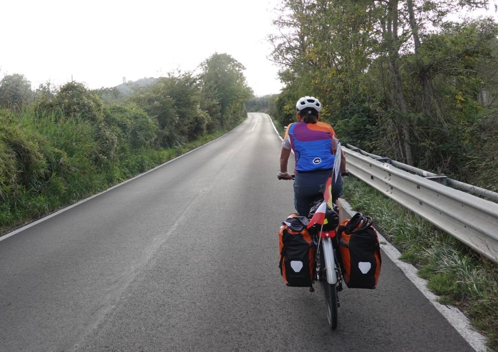 Wir lösen uns heute wieder von der Originalroute des EV 7 und fahren auf Haupt- und Nebenstraßen. Der Unterschied zwischen den verschiedenen Straßen ist nicht unbedingt das Verkehrsaufkommen, mal ist auf einer Hauptstraße weniger los als auf einer Nebenstraße. Der erste Unterschied ist der Belag. Die Nebenstraßen sind meist dermaßen kaputt, dass wir Slalom um tiefe Löcher, Wellen und Längsrillen fahren müssen. Es ist schwierig am rechten Straßenrand zu fahren. Der zweite Unterschied ist der Müll. Je stärker eine Straße befahren wird, desto mehr Müll liegt am Rand. Und nicht nur ab und zu ein wenig, nein, flächendeckend. Die italienischen Autofahrer*innen werfen alles aus dem Auto: Zigarettenschachteln, Tüten, Becher, Plastikflaschen, aber auch Textilien, Haushaltsgegenstände, Biomüll…einfach alles. Sabine hört nicht mehr auf, sich darüber aufzuregen. Wir unterstützen mit unserem Blog One Earth One Ocean indem wir von unseren Lesern Spenden sammeln um die Meere von Plastik zu befreien und hier liegt tonnenweise Plastikmüll an den Straßen. Neben bewirtschafteten Feldern. Nirgends auf unseren bisherigen 6000km haben wir das so erlebt. Es ist frustrierend. Dabei ist die Hügellandschaft kurz vor Rom durchaus sehenswert.