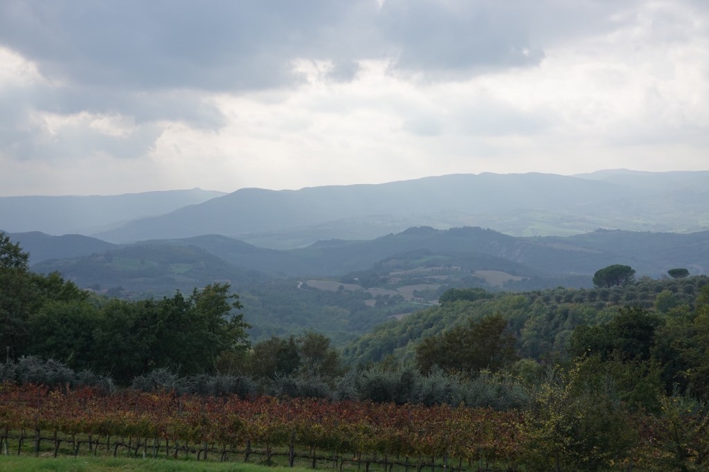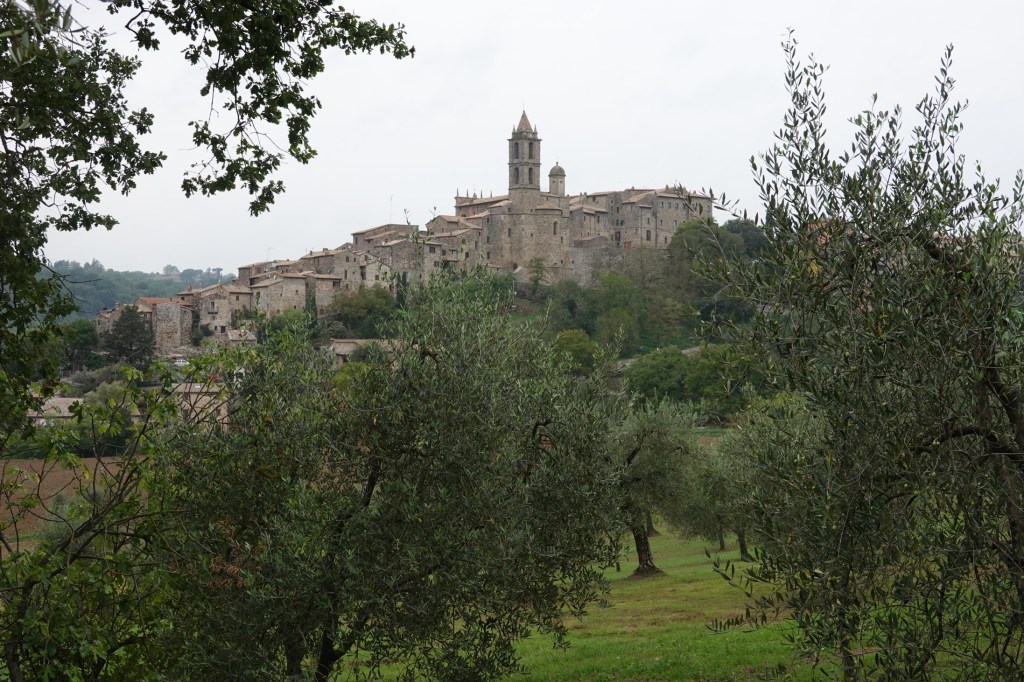 Es ist neblig und nass. Von unserem Adlerhorst auf dem Berg von Bomarzo sehen wir keine 50m tief hinunter. Wir sind in den Wolken und müssen zuerst noch weiter steil hoch fahren. Alle paar Minuten reiben wir uns über die Brillen. Wir sehen nicht sehr viel. Aber wahrscheinlich haben wir auch nicht viel verpasst. Rechts und links der Straße gibt es nur Plantagen mit Haselnussbäumen. Es geht heute immer wieder in Flusstäler hinab und dann wieder steil bergauf. 1000 Höhenmeter sind es am Ende. Irgendwann löst die Sonne den Nebel auf. Es wird heiß. Über 27 Grad.