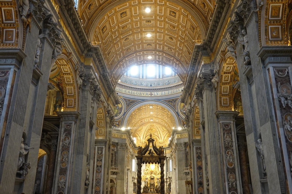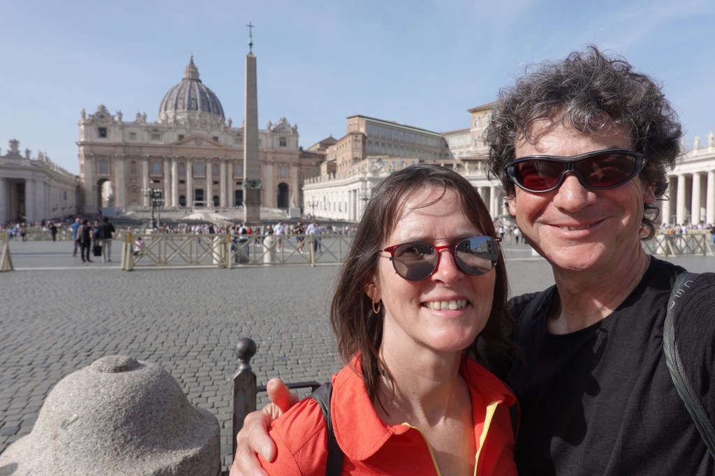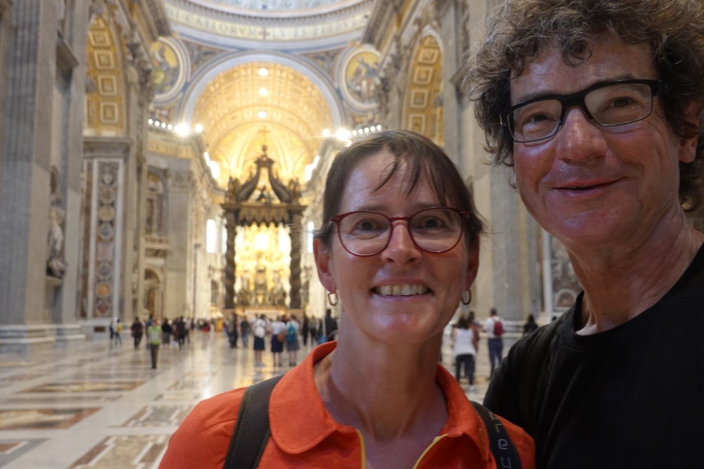Die Schlange vor dem Petersdom ist etwas kürzer, wir stellen uns an. Kurz vor der Sicherheitskontrolle fällt Sabine ein, dass sie noch ihr Taschenmesser im Rucksack hat. So ein Mist! Haben wir uns umsonst angestellt? Es wird auch prompt bei der Durchleuchtung gefunden. Ein netter Carabinieri lässt Sabine mit ihrem Messer aus der Kontrolle nach außen. Sie soll das Teil bei einem Kiosk deponieren und später wieder abholen. So klappt es doch noch mit der Besichtigung des imposanten Petersdoms.