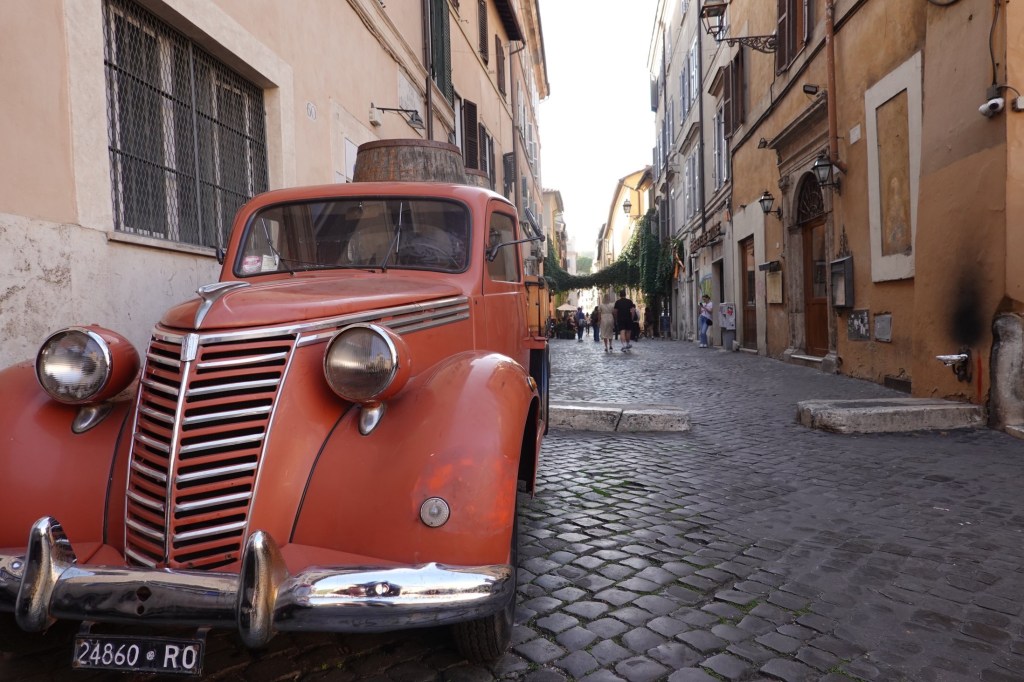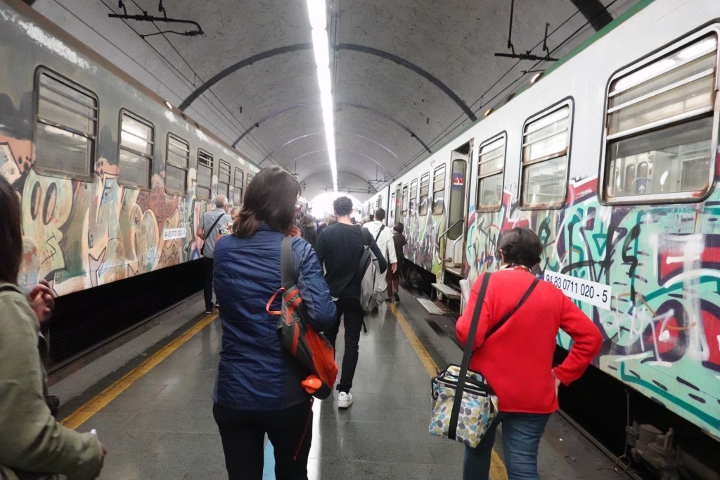 Der alte Shuttlebus rappelt und knattert. Kein Grund für den Fahrer langsam zu fahren. Er rast um die Kurven und wir haben Angst, dass es dem Kleinkind neben uns schlecht wird. Doch seine Mama ist ganz gelassen. Das muss sie auch sein, sie startet alleine mit sechs Kindern eine Rombesichtigung. Am Bahnhof in Prima Porta steigen wir in den Zug um. Er sieht aus als hätte er 20 Jahre irgendwo auf einem Abstellgleis gestanden und Sprayer hätten ihre Kunst daran erprobt. Er bringt uns ins Zentrum.