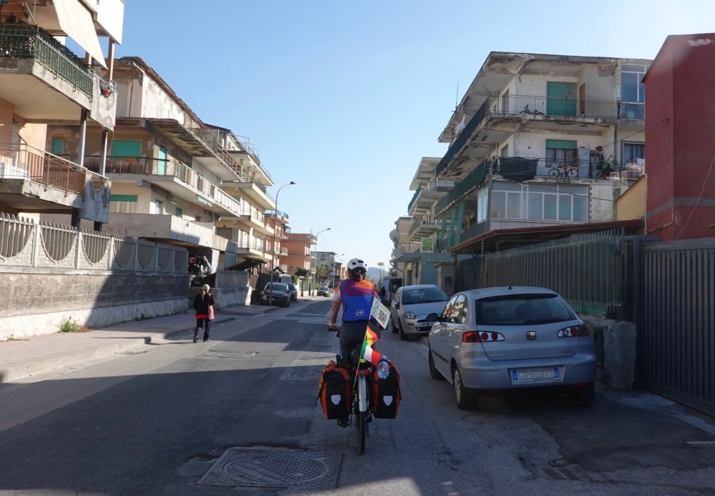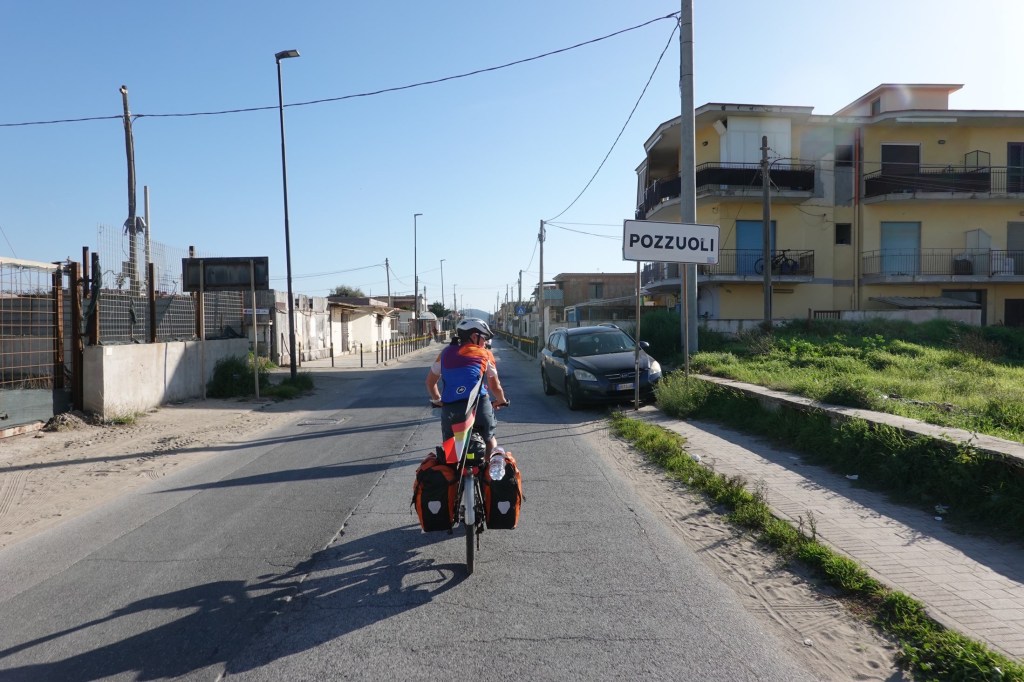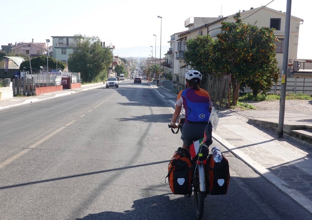 Die weitere Strecke nach Gaeta bestätigt uns in unserem Entschluss. Wir stehen im Stau, atmen nur noch Abgase ein, es ist laut… Mit Radfahren hat das nichts mehr zu tun. Glücklicherweise haben wir unsere Unterkunft in einem ruhigeren Badeort gewählt. Wir können noch zum Strand und das erste Mal im Mittelmeer schwimmen. Wir freuen uns auf das Baden im Meer von Sizilien und Malta.