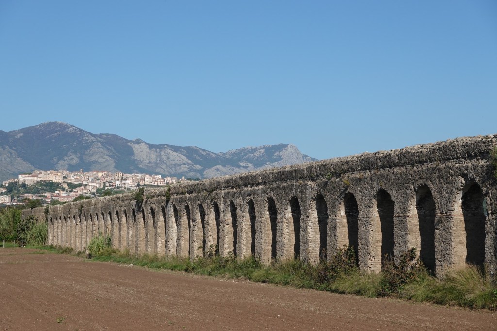 Heute genießen wir die ersten 25 km. Wir fahren an Olivenplantagen vorbei durch kleine Dörfer. Die Wahl der Straße ist scheinbar richtig. Viele Rennradfahrer, nur Männer, kommen uns entgegen. Es ist am Sonntag eine beliebte Radstrecke. Wir kommen zur Via Appia Antica. Seitlich neben dem Asphalt ist noch altes römisches Pflaster zu erkennen. Bis Terracina fahren wir auf Seitenstraßen, dann gibt es nur noch die Hauptstraße. Es ist zu steil für Nebenstraßen. Na gut. Es muss halt sein.