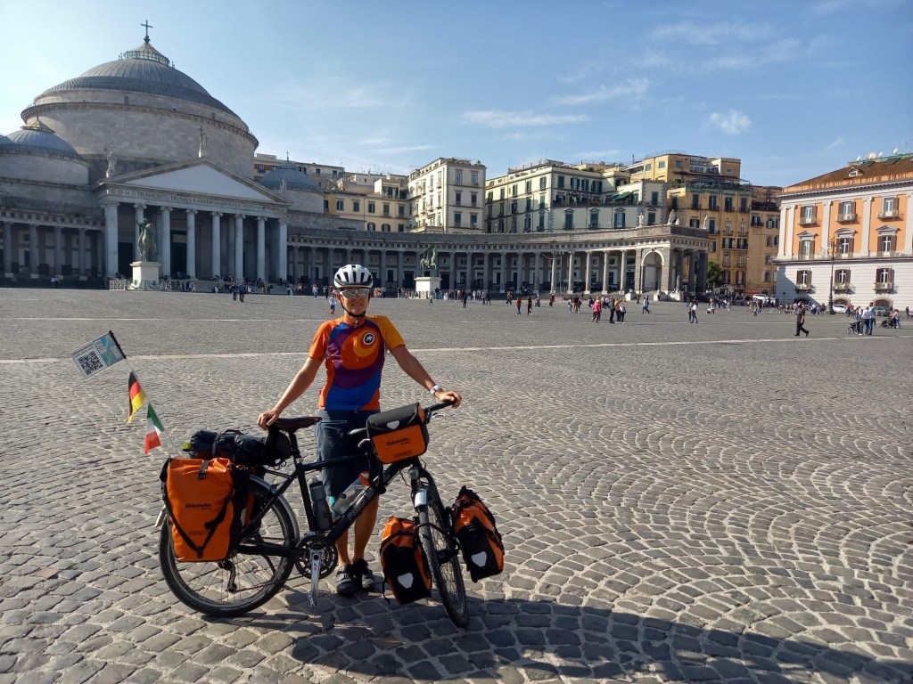 Unser kleines Apartment haben wir gut gewählt. Direkt in der Nähe des Piazza Plebiszito und des Teatro di San Carlo, der ältesten Oper Europas. Und sogar mit Meerblick. Und den nettesten Gastgeberinnen, die wir uns vorstellen können. Wir bekommen Hilfe beim Taschen und Räder schleppen, dürfen die Räder mit ins Apartment nehmen und sogar an unserem Abreisetag mehrere Stunden samt Gepäck in der Lobby deponieren.