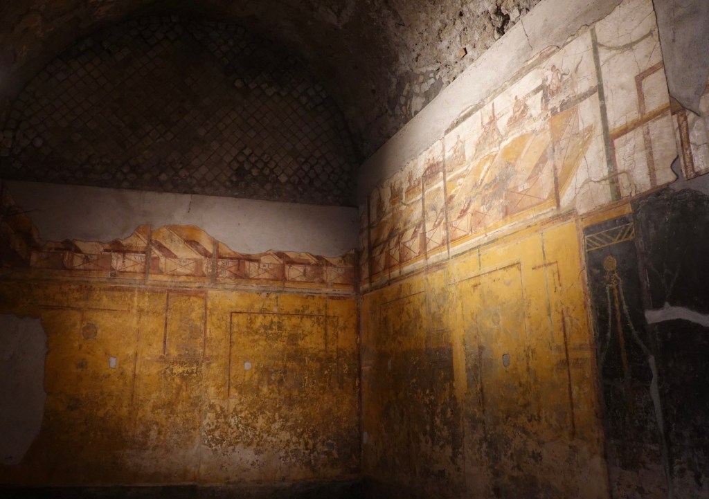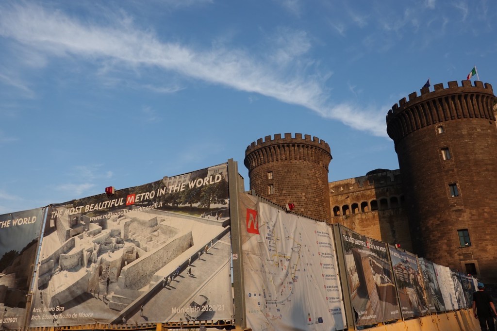 Bei fast 30 Grad an einem Novembertag ist es anstrengender als Rad fahren. Und es herrscht auch hier Hochbetrieb. Besonders auf der Rückfahrt mit dem rappelnden, uralten Zug. Der war sicher auch mal unter Vulkanasche konserviert und ist wieder in Betrieb genommen worden. Die Metro ist neuer und einige Bahnhöfe sind schon künstlerisch gestaltet. Neapel verwirklicht mit der metrò dell arte ein besonderes Projekt. Unzählige Künstler arbeiten daran, die gesamte Metro modern umzugestalten. Die Fahrweise der Metro ist nicht zeitgemäß. Während in vielen Städten die U-Bahn autonom fährt, fährt hier scheinbar ein Zugführer , der sonst mit seiner Vespa durch Neapel rast und entweder nur Gas oder Bremse kennt. Die Bahn beschleunigt und bremst abrupt, nicht anders als auf der Straße. Alt und neu sind in in Neapel eng beieinander.