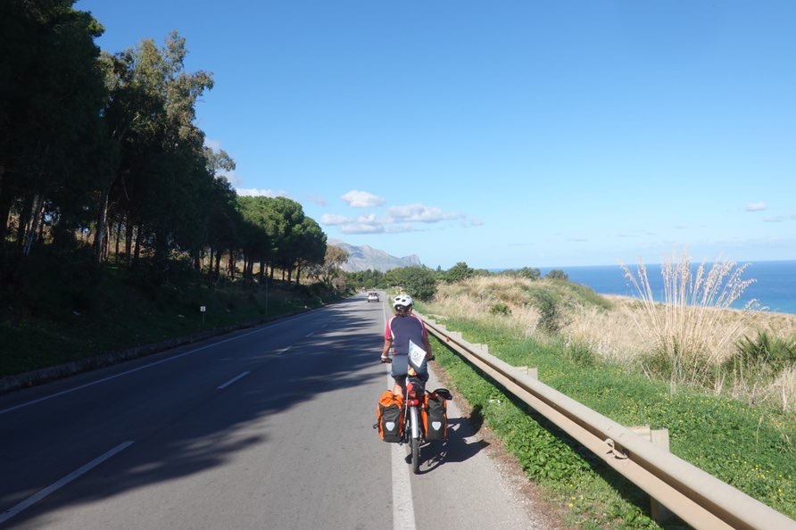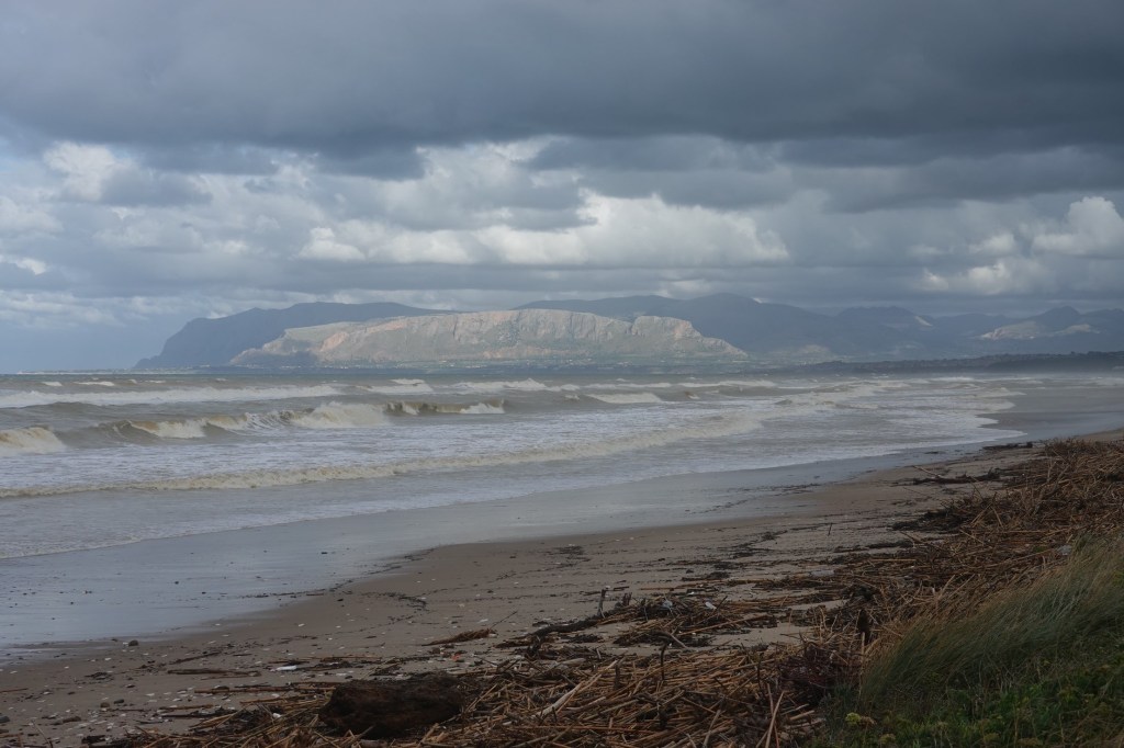 Nach dem Regen folgt ein Sturm. Es rappelt und knattert die ganze Nacht lang an unserer Hütte. Bei diesem starken Wind weiter fahren? Und dann noch genau gegen den Wind? Wir wollen nicht noch einen Tag hier warten. So toll ist es auch nicht. Alle paar Minuten schauen wir in den Wetterbericht. Irgendwann fahren wir los. Es ist gar nicht so schlimm. Wir hatten schon stärkeren Wind beim Rad fahren. Und der Verkehr ist halbwegs annehmbar. Nach dem Palermo Airport nimmt er ab. Endlich können wir wieder fast normal Rad fahren, ohne Angst zu haben in die Leitplanken gedrängt zu werden. Auch der Straßenbelag ist so gut wie lange nicht mehr.