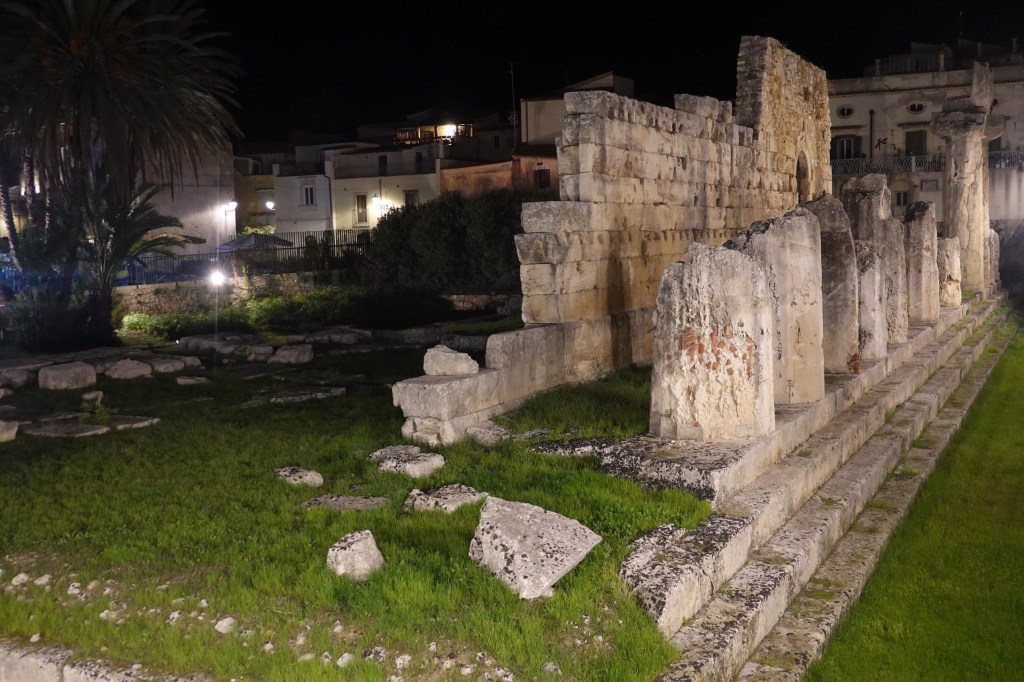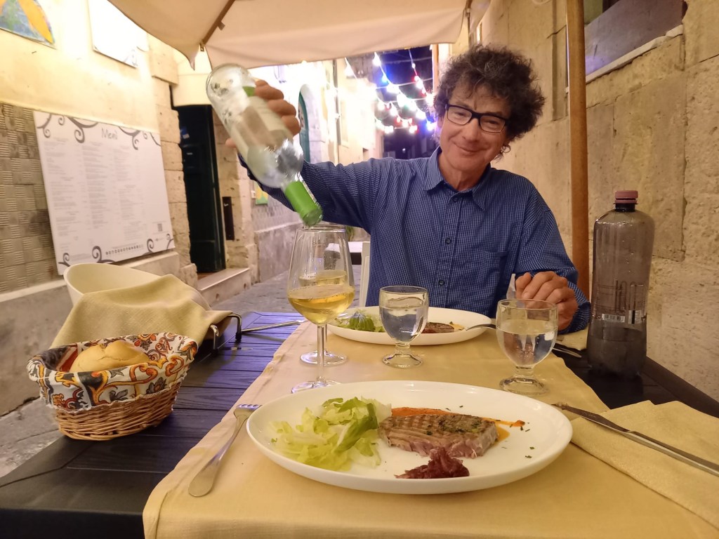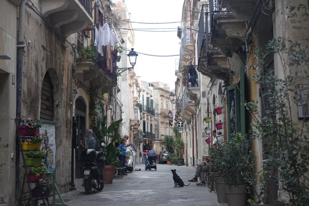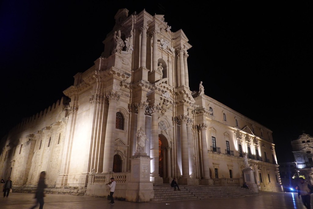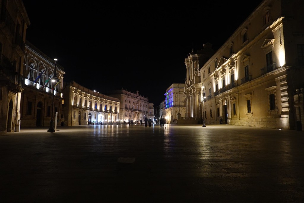 So kommen wir gut bis zu unserem radfreundlichen Apartment mitten im Centro Storico. Wir schieben die Räder in die Wohnung und erkunden die Stadt. Klaus hat heute Geburtstag. Nach der Besichtigung des barocken Domes, der als byzantinische Kirche in den griechischen Athena-Tempel gebaut wurde, wollen wir feiern. Wir finden ein kleines Restaurant und genießen ein typisch sizilianisches Viergangmenü. Im Freien. Im November. So kann das Rentenalter beginnen.