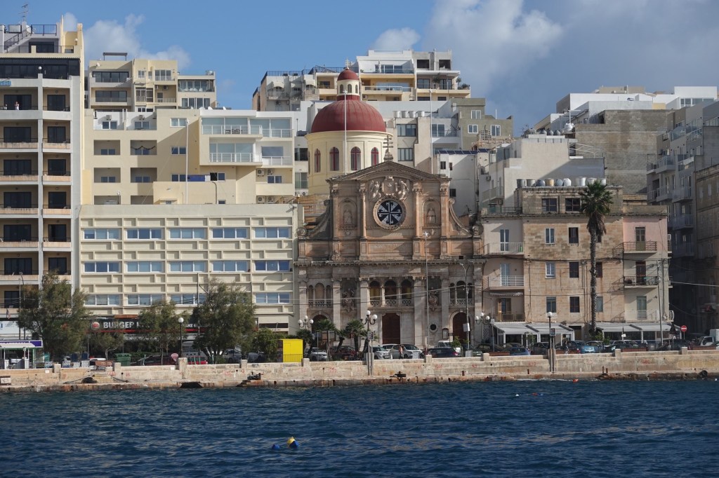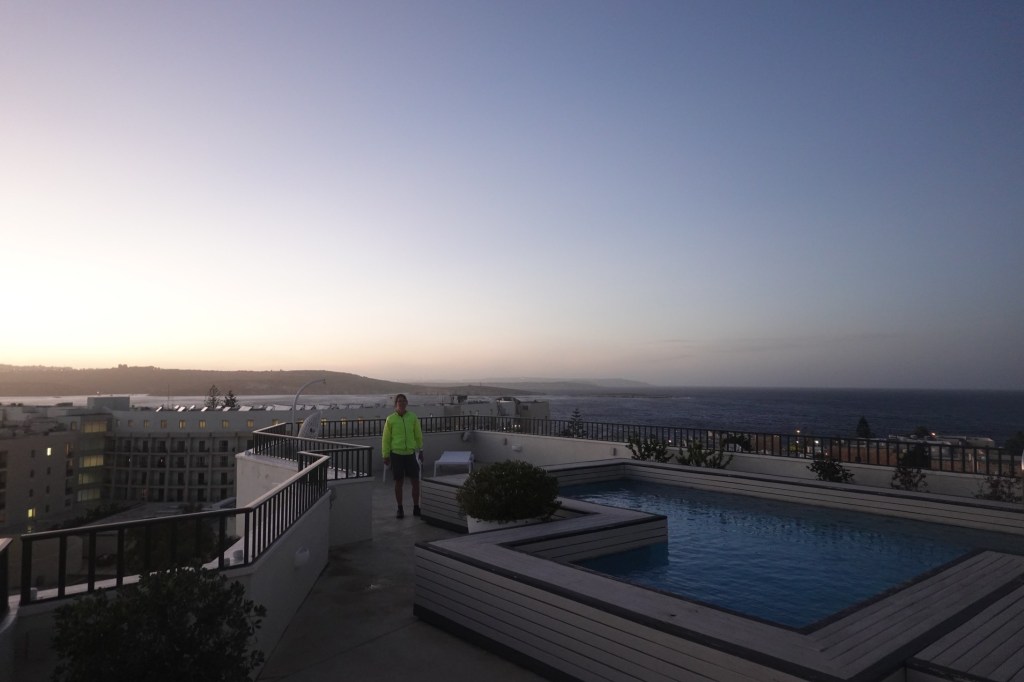 Unsere Reise ist (fast) zu Ende. Wir beziehen unser letztes Apartment. Für acht Tage, dann geht es nach Hause. Von Valetta aus kürzen wir mit dem Wassertaxi ab. So sparen wir uns einen Teil der gefährlichen Stadtdurchfahrt. Doch so ganz reibungslos kommen wir nicht durch. Wie so oft auf unserer Tour müssen wir wegen einer gesperrten Straße umkehren. Klaus navigiert neu, es nervt. Wir freuen uns, als wir endlich die Küstenstraße erreichen. Mit Radweg. Hier ist sicher auch die Radstrecke des Malta-Triathlons. Aber dann als gesperrte Straße. Um die Halbinsel bei Saint Pauls Bay fahren wir komplett herum. In Bugibba ist unser Aparthotel, eine modern eingerichtete Wohnung mit Meerblick. Hier wollen wir die Zeit bis zu unserem Flug nach Deutschland verbringen. Eine andere Möglichkeit, heim zu kommen, gibt es nicht. Machen wir doch einfach noch ein paar Tage Urlaub auf Malta. Der Wetterbericht verheißt ab Wochenende nichts Gutes. Regen und Wind. Das ist unser Winter auf Malta, erklärt uns Monica an der Rezeption des Hotels. Na gut, machen wir das Beste draus. Die nächsten zwei Tage sollen noch schön sein. Auch heute ist wenig Regen möglich. Aber viel Wind, Windstärke 7 bis 8, also Sturmstärke. Wir beziehen das Apartment und setzen uns wieder auf die Räder.