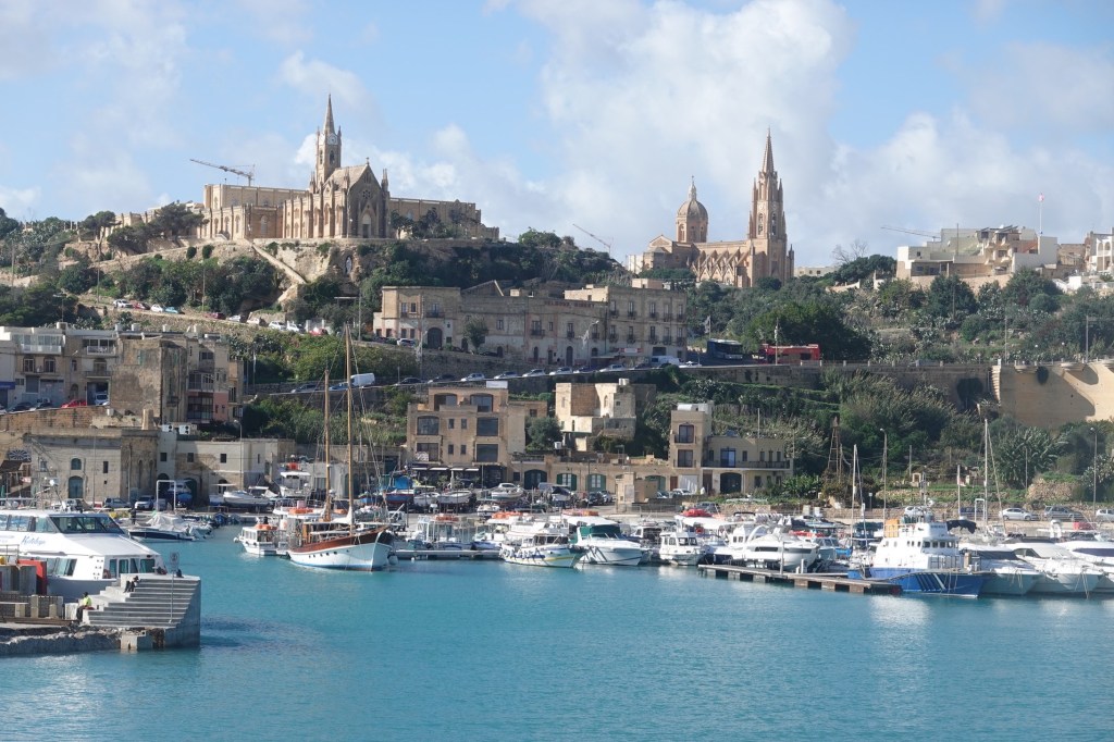 Wer hat gewusst, dass Malta aus mehreren Inseln besteht? Wir vorher nicht. Noch nie haben wir uns mit diesem kleinsten Mitgliedsstaat der EU beschäftigt. Malta besteht neben der Hauptinsel aus der kleinen Insel Comino, die einen berühmten Strand, die Blue Lagoon, aber keine Straßen hat. Und aus Gozo. Die ca. 14 km lange und 7 km breite Nachbarinsel ist etwas ländlicher und hat keine Orte mit riesigen Bettenburgen für den Sommertourismus wie ihre große Schwester. Es gibt Klippen, schöne Buchten und Orte mit Barockkirchen. Und viel Landwirtschaft. Auf Gozo gibt es eine Megalith-Tempelanlage, die zwischen 3600 und 3200 v. Chr. erbaut wurde. Also älter ist als die ägyptischen Pyramiden. Jetzt haben wir auf unserer Tour schon viele historischen Stätten besichtigt, die ältesten Bauwerke können wir nicht links liegen lassen. Also auf nach Gozo.