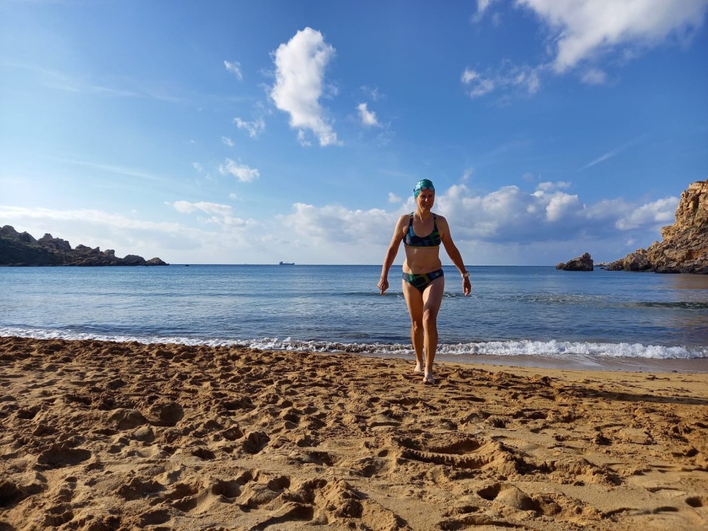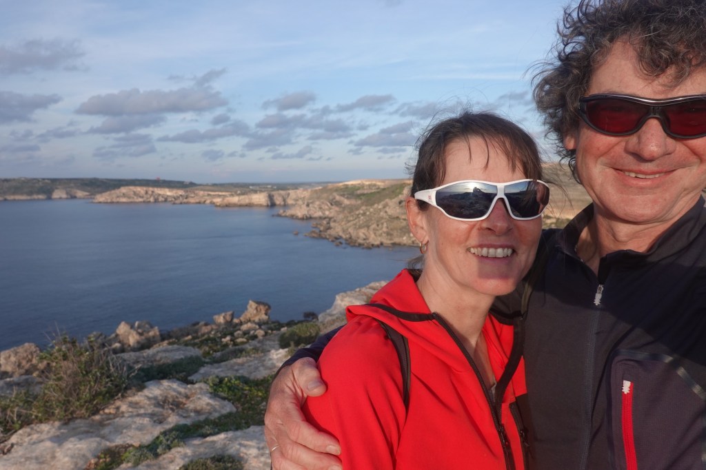 Zur Krönung schwimmen wir noch ein letztes Mal im Meer. Ende November!!! Im Café oberhalb der Tuffieha Bay genießen wir die Aussicht. Klaus möchte gar nicht mehr weiter, der Rastaman an der Café-Bar hat scheinbar den gleichen Musikgeschmack. Bei Kaffee, guter Musik und atemberaubender Aussicht genießen wir die Nachmittagssonne. Nach einem zweiten Küstenspaziergang bringt uns der Bus zurück. Sommer im maltesischen Winter ist auch was Schönes.
