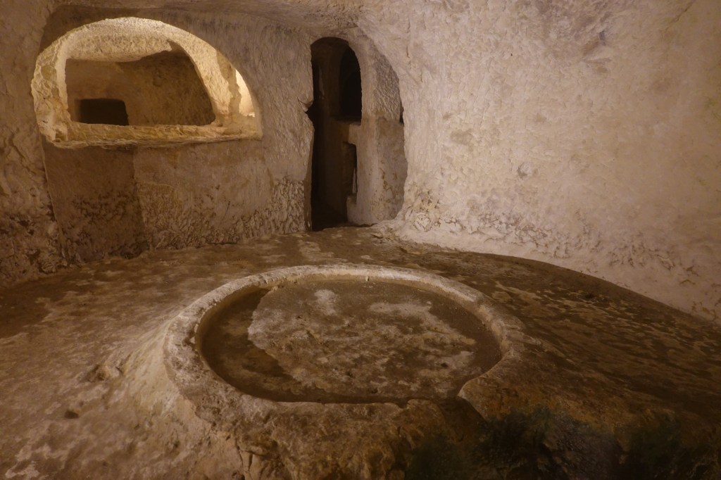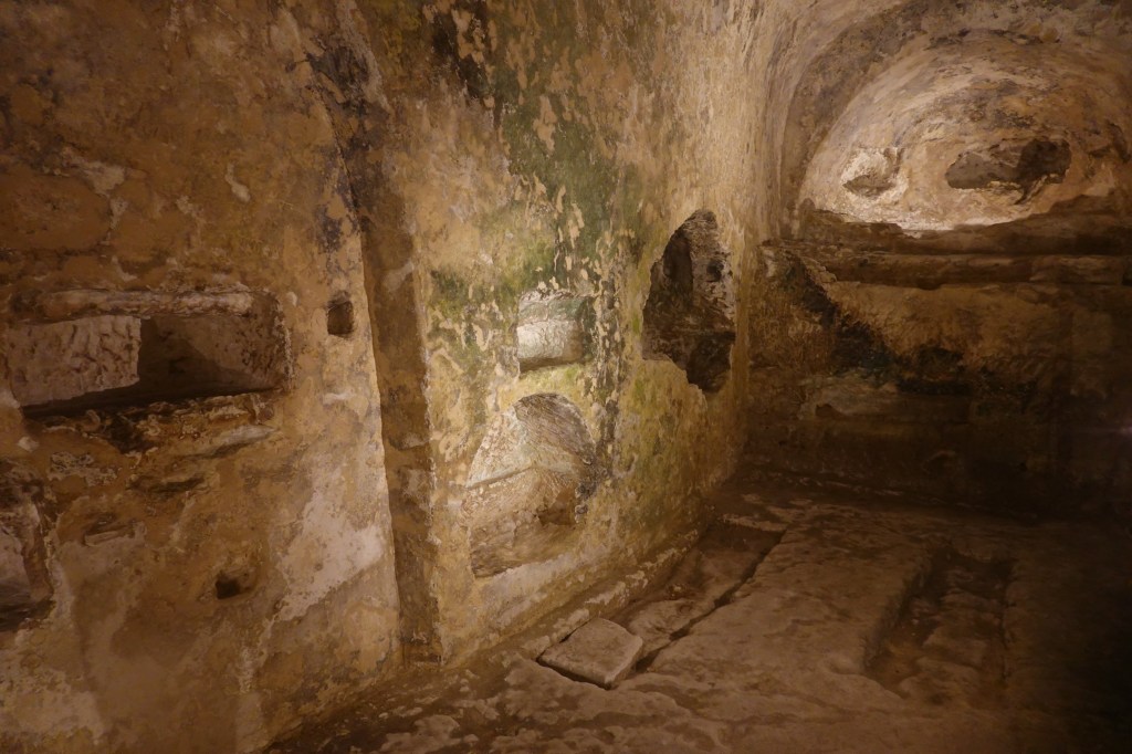 In der moderneren Nachbarstadt Il-Rabat finden wir dann doch noch trockene Plätze. Die Katakomben. Unterirdische antike Grabsysteme aus Gängen, Kammern und Nischen, die in den felsigen Untergrund gegraben wurden. Die St. Paul´s Catacombs stammen vermutlich aus dem Jahr 350 n. Chr.. Hier wurden etwa 1400 Tote auf verschiedene Weisen bestattet. Wir fanden die Besichtigung sehr interessant, wir wären nie in die Unterwelt Rabats hinabgestiegen, wenn es nicht draußen so ungemütlich gewesen wäre. Nach so viel Historie nehmen wir den Bus zurück. Er ist rappelvoll. Und fährt wie ein Henker. Gut, dass wir nicht mehr als Hindernisse mit unseren Rädern im Weg sind. Der Wind ist so stürmisch, dass die Wellen über die Uferstraße schlagen. Nass kommen wir im Hotel an. Monica am Empfang lacht: That is what I mean with our Winter on Malta.
