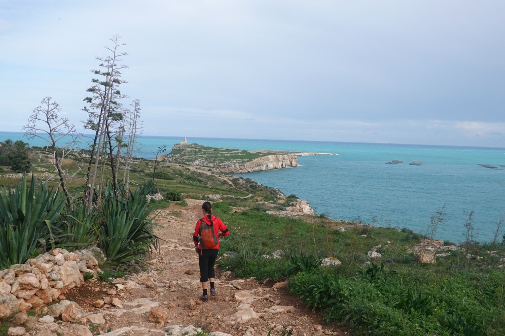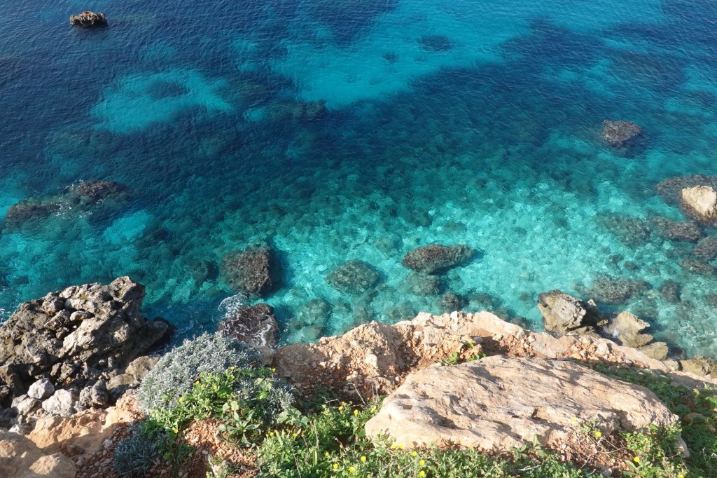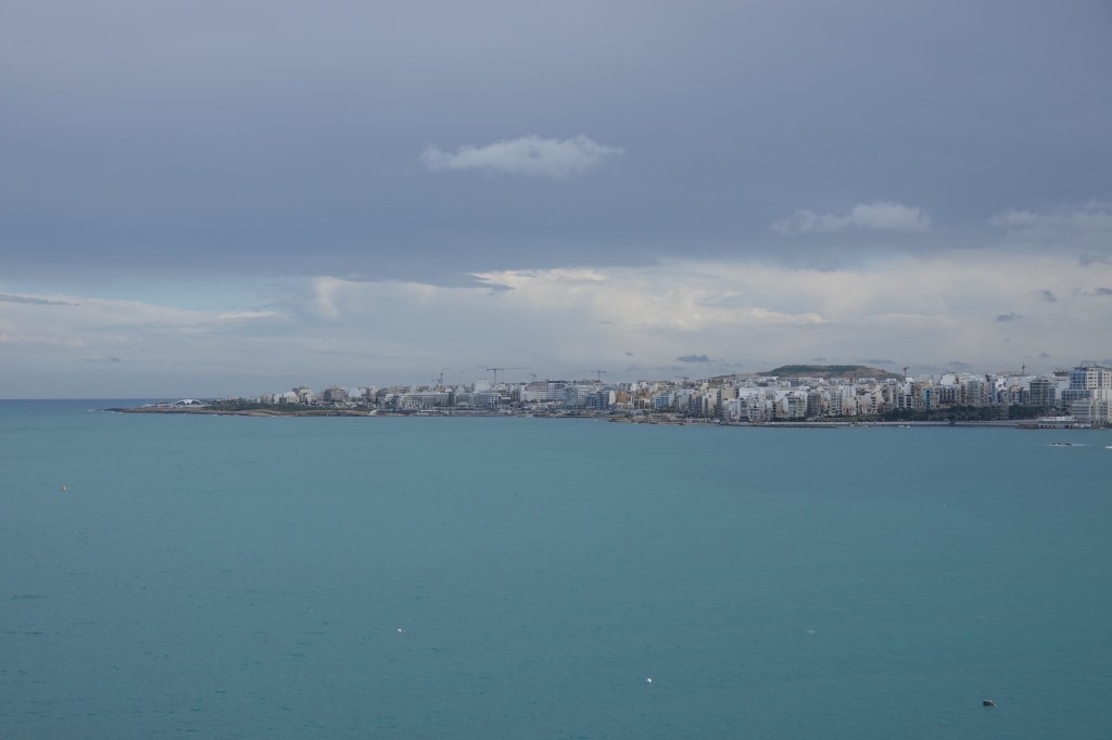 Schade, es wird wieder Regen vorausgesagt. Egal. Wieder wollen wir wandern und wieder nehmen wir den Bus. Zuerst auf die nordöstliche Seite der Insel. Von dort sehen wir gegenüber das Häusermeer der Bucht, in der wir wohnen. Hier gibt es Natur. Mit Hindernissen. Ein Paar kommt uns entgegen und warnt uns vor dem Schlamm auf den Wegen der Halbinsel. Die Farbe der Schuhe der beiden ist vor lauter Schlamm nicht mehr zu erkennen. Wir nehmen Wege über Felsen. Von weitem sehen wir, wo die beiden herkamen. An der Spitze der Halbinsel gibt es alte Salinen auf Felsen und ringsum nur Matsch. Das lassen wir lieber sein und wandern in Richtung Stadt Mellieha.
