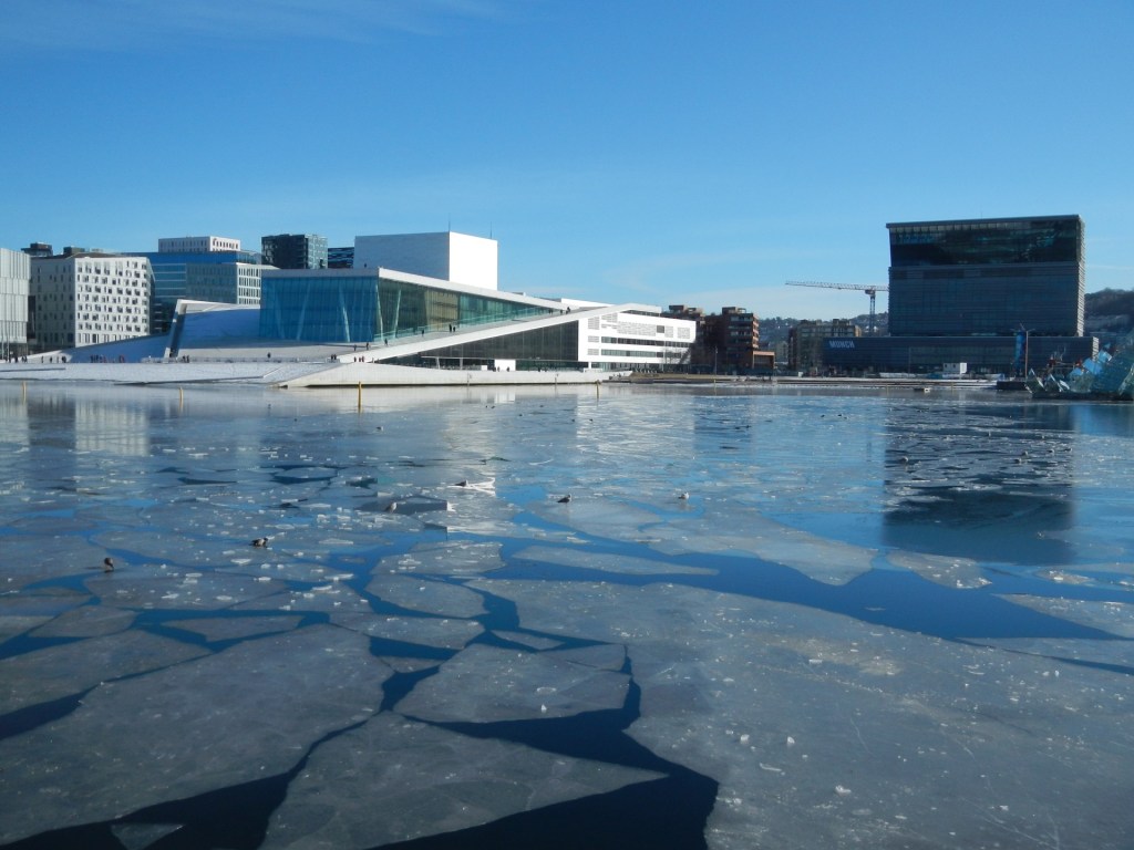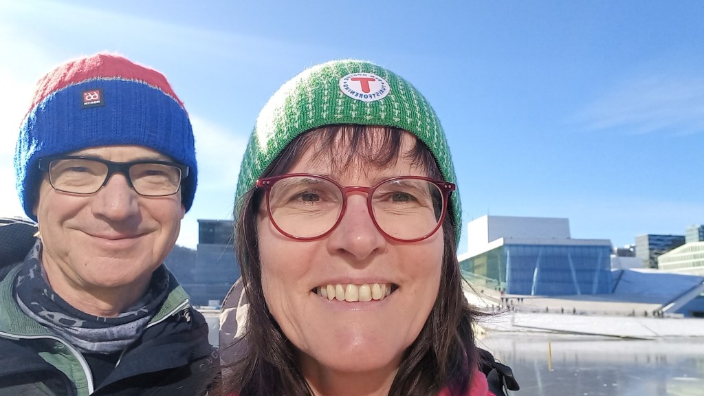 Die Nacht war kurz, aber erholsam. Wir haben gut geschlafen. Nach dem üppigen skandinavischen Frühstücksbüffet auf der Fähre sind wir gestärkt für die Weiterfahrt. Gestern gab es auf unserer 19-stündigen Fahrt nur drei Brote für jeden. In Oslo herrscht Traumwetter. Wir deponieren unser Gepäck am Bahnhof und spazieren zur Oper am Oslofjord. Mit ihren weißen Fassaden ragt sie wie ein Eisberg aus dem vereisten Fjord. Die vierstündige Busfahrt mit dem Bus nach Beitostølen ist sehr entspannend. Wir genießen die verschneite Landschaft. Am Nachmittag erreichen wir den Skiort. Morgen kann es losgehen.