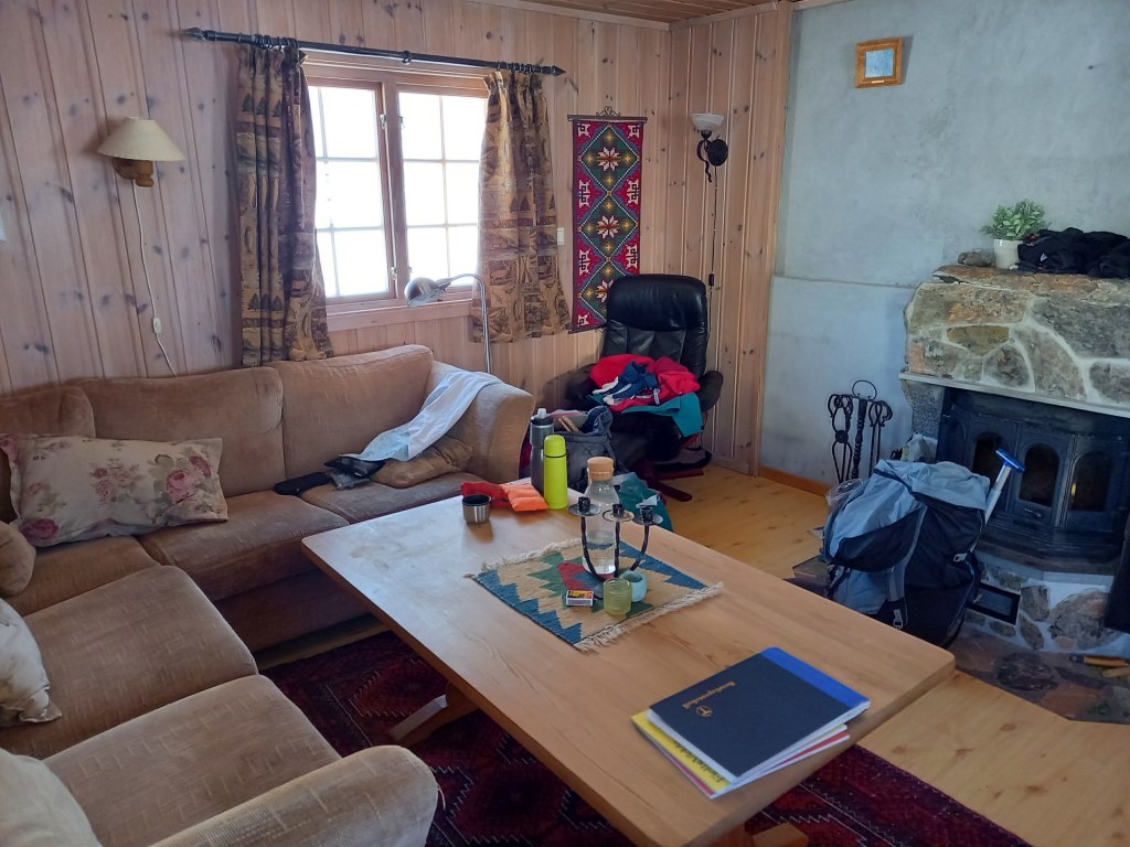 Das System der norwegischen Hütten ist weltweit einmalig. Und es beruht auf der Ehrlichkeit der Besucher. Die Hütte wird geputzt und aufgeräumt verlassen. Neues Holz sollte schon reingelegt werden. Am Ende wird die Hütte nach ihrem Verlassen wieder mit dem Vorhängeschloss verschlossen. Das ist das System. Wir sind froh, dass es in Norwegen solch einen Komfort in den Bergen gibt.