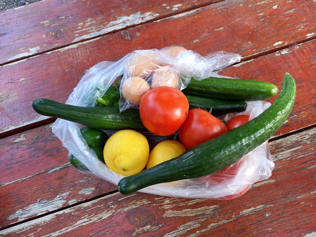Der Campingplatzbesitzer, sein Bruder und sein Sohn halten uns an. Sie sind begeistert von unserer Tour. Der Chef will uns ein Geschenk machen. Er weiß noch nicht, was er uns schenken will, er muss zuerst mit seiner Frau reden. Beim Wegfahren ruft er uns zu, dass wir auf keinen Fall Salatgurken kaufen sollen. Nach unserer Rückkehr aus dem Supermarkt bringt er uns eine ganze Tüte mit Gemüse, Eiern und Zitronen. Die Griechen sind so nett. Wir werden am Geburtstag von Sabines Vater reich beschenkt und herzlich willkommen geheißen.
