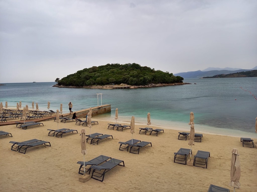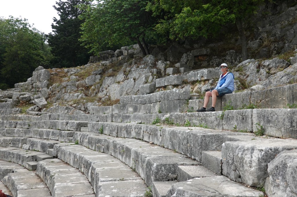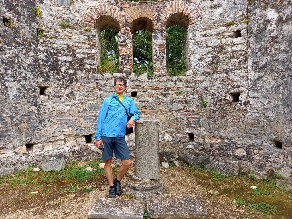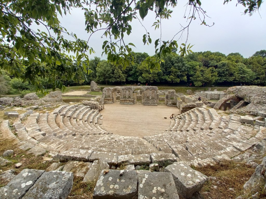 Eine kleine alte Fähre an Stahlseilen bringt uns über den Butrintsee. Im Naturschutzgebiet Butrint ist eine der Hauptsehenswürdigkeiten Albaniens. Hier befand sich einst eine riesige antike Stadt. Griechen, Römer, Venezianer, Osmanen, Byzantiner und noch weitere Völker herrschten hier und hinterließen ihre Bauwerke. Das wichtigste und am besten erhaltene Bauwerk ist das Amphitheater. Mit den Ausgrabungen haben Archäologen 1928 begonnen. Die vielen Unruhen und Kriege in Albanien führten immer wieder zu Grabungsstopps und Plünderungen. Die erhaltenen Ruinen inmitten eines Waldes zwischen See und Lagune sind heute auf jeden Fall einen Besuch wert. Und wir freuen uns, dass wir es organisieren konnten. Am Eingang gab es einen Security, er hat auf unsere von bepackten Räder aufgepasst. Von Roland haben wir uns zuvor verabschiedet. Er ist weiter nach Ksamil. Das ist heute auch unser Ziel.