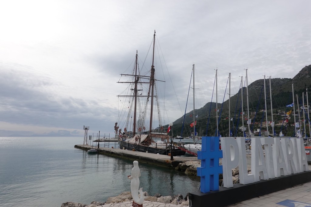 Dann geht es auf die Hauptstraße. Wir sind erstaunt. Es herrscht wenig Verkehr. Oft haben wir die Straße, die meist so breit ist wie eine vierspurige Autobahn, ganz für uns alleine. Und dazu Rückenwind. Wir machen Tempo. Wir kommen so richtig in einen Geschwindigkeitsrausch. So schnell waren wir bisher noch nicht unterwegs. Auch die paar Tropfen, die auf uns regnen, stören uns nicht. In Plataria beziehen wir ein Apartment. Am Hafen liegen unzählige Segelboote. Die meisten werden vermietet. In der Taverne am Sandstrand sitzen außer uns meist Segler*innen. Das muss toll sein zwischen den ganzen Inseln im Ionischen Meer. Wir bleiben auf Land und genießen heute den Fang aus dem Meer: gegrillten Oktopus.
