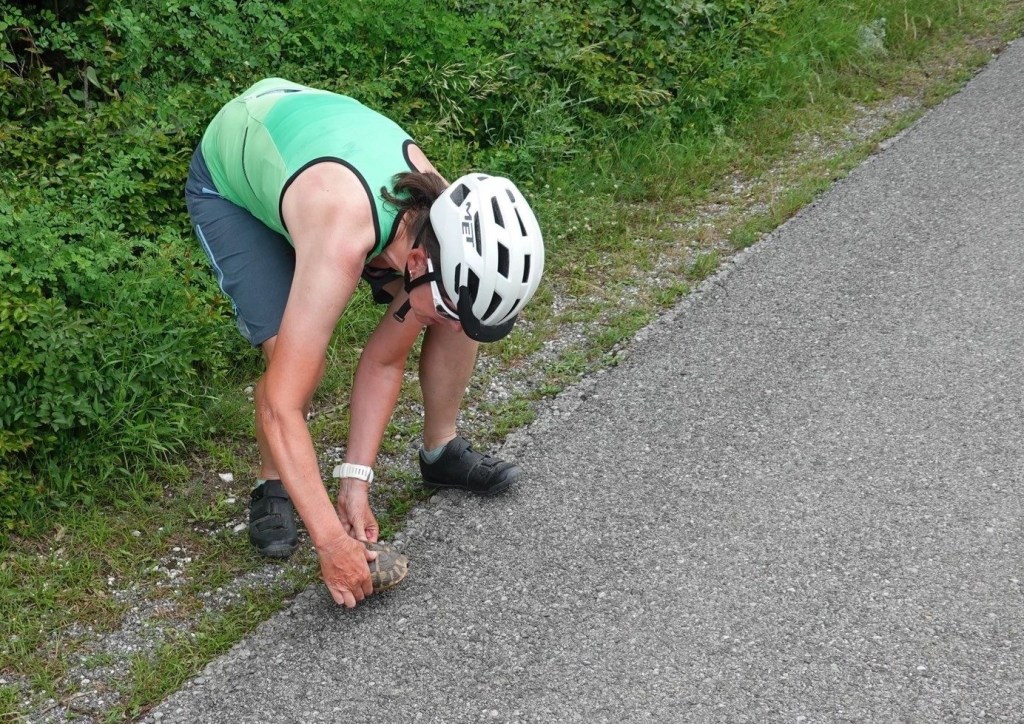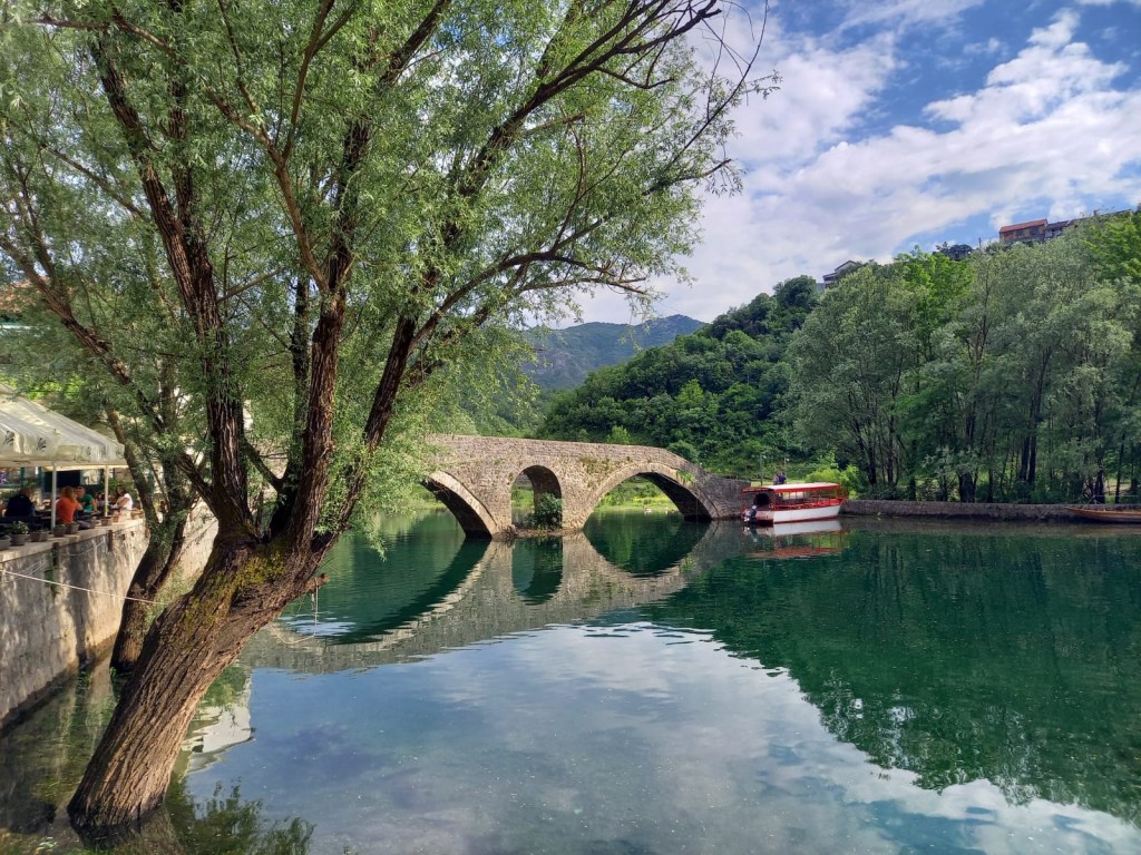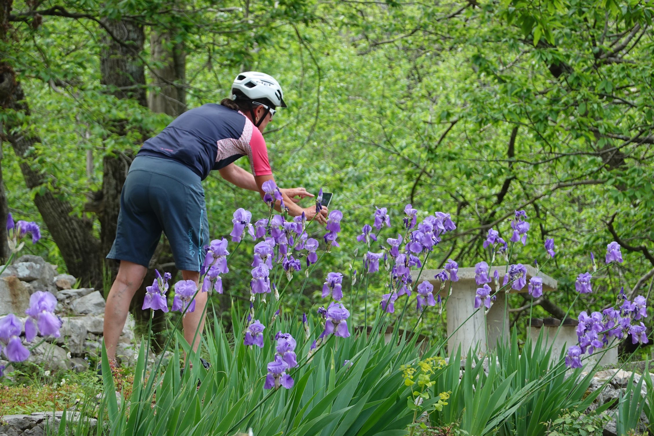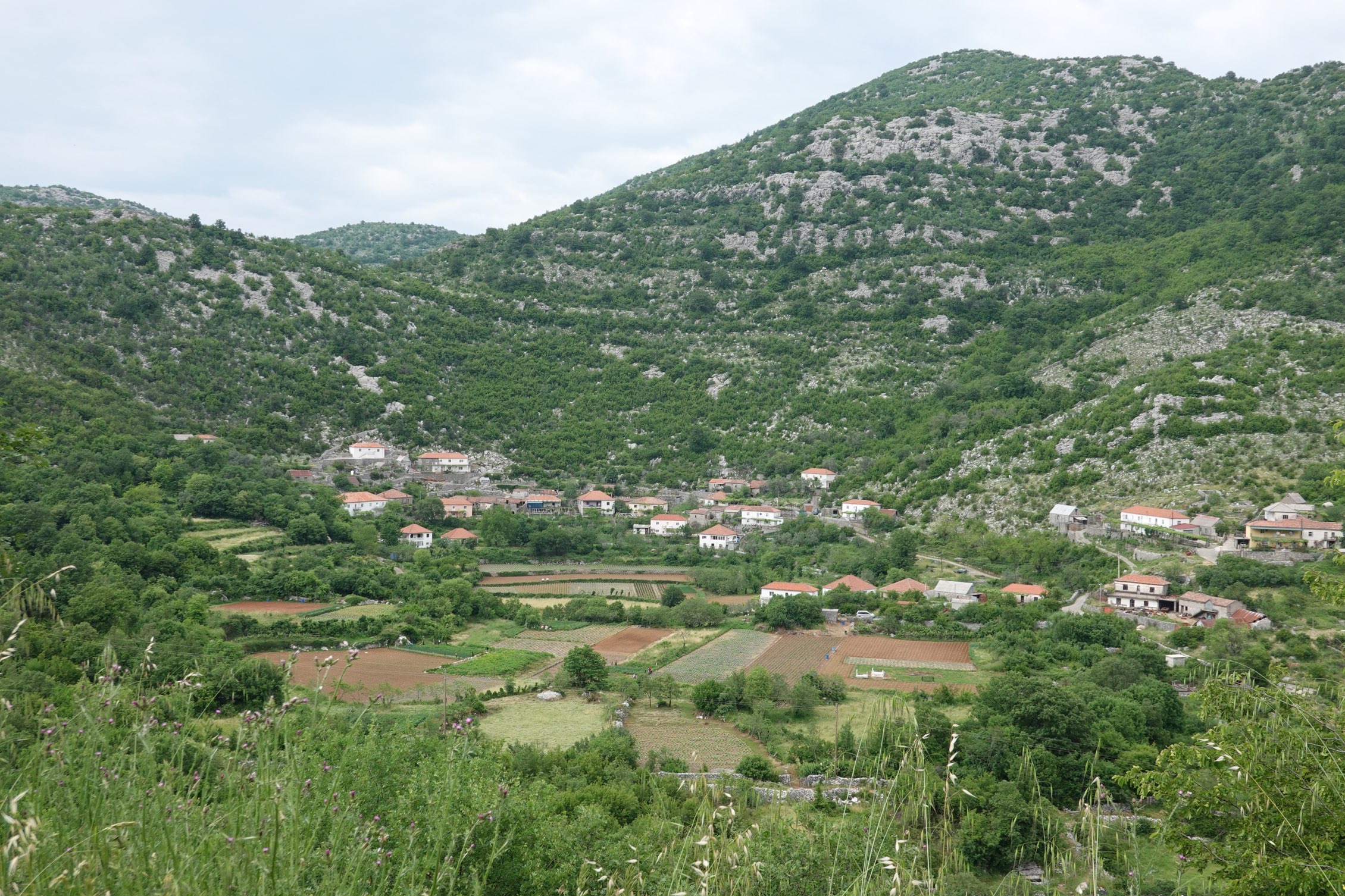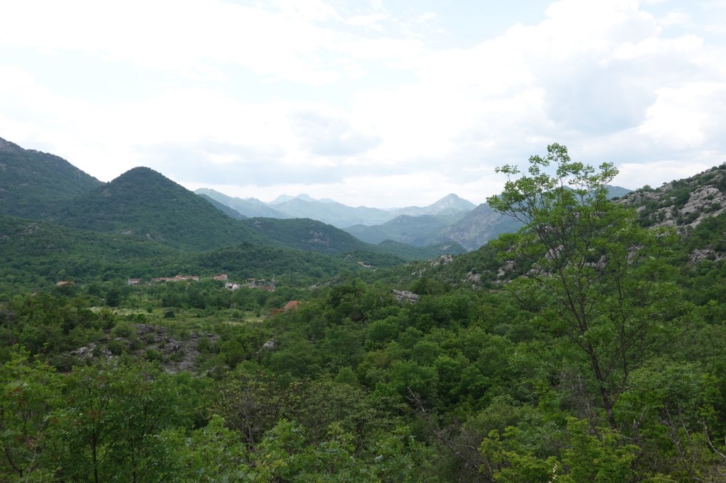 Wir bekommen ein deftiges typisch monteneginisches Frühstück serviert. Mit viel Schinken, Eiern, Tomaten und Schafskäse. Resultat: wir haben später Durst ohne Ende. In Montenegro gibt es einige ausgeschilderte Panoramastraßen. Unsere ist eine davon. Sie führt immer am Skadarsko Jezero, am Skadar-See, entlang. Es geht auf und ab, zwischen 200 und 400 m über dem See. Dauernd halten wir an um zu fotografieren. Die Aussicht ist hinter jeder Kurve spektakulärer. Dazu die üppigen Blumen rechts und links der Straße. Es gibt viele Heilkräuter und unzählige Orchideenarten. Gestern Abend hatten wir beim Abendessen im Wind noch zwei Jacken an. Heute ist es heiß, fast 30 Grad. Wir schwitzen und sind durstig. In einem Dorf kaufen wir Wasser. Es geht hinunter auf Seeniveau. In Virpazar ist zum ersten Mal touristisch was los. In dem Ort werden Bootstouren über den See angeboten. Wir suchen einen Supermarkt. Er ist geschlossen. Wasser gibt es an einem Getränkestand. Gut versorgt nehmen wir den nächsten Berg in Angriff. Bis zu unserem Ziel sind es noch ein paar Höhenmeter.