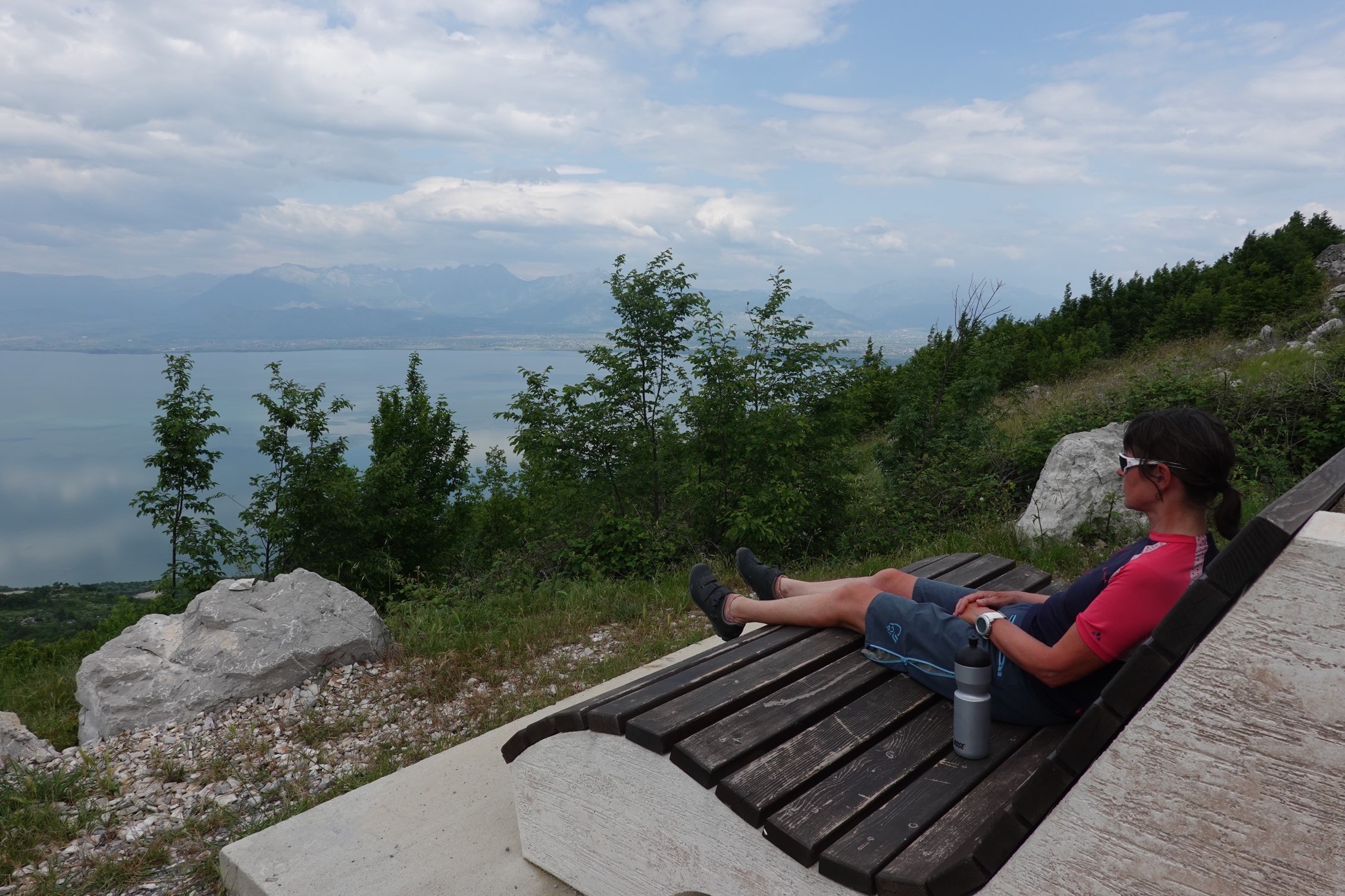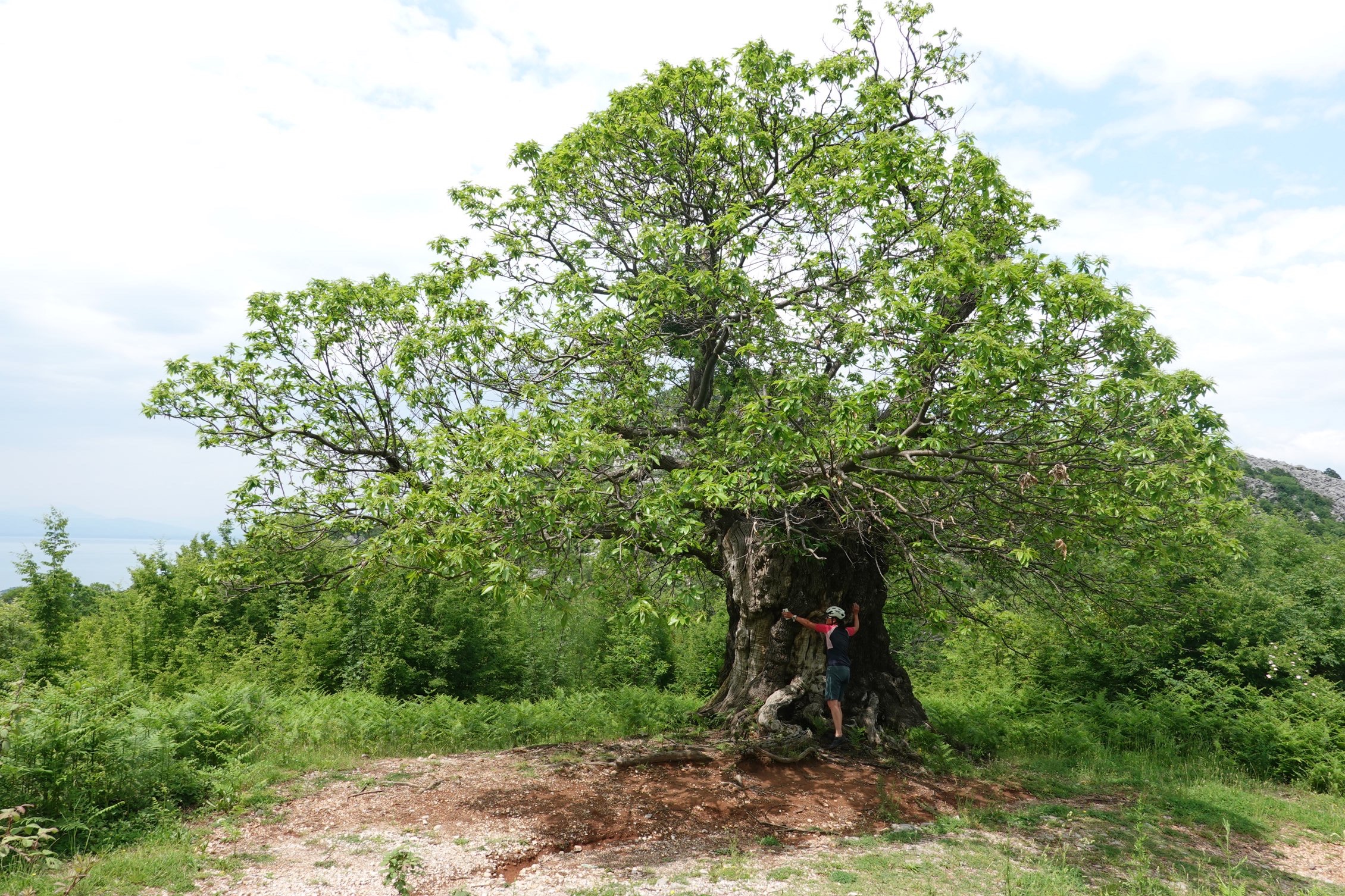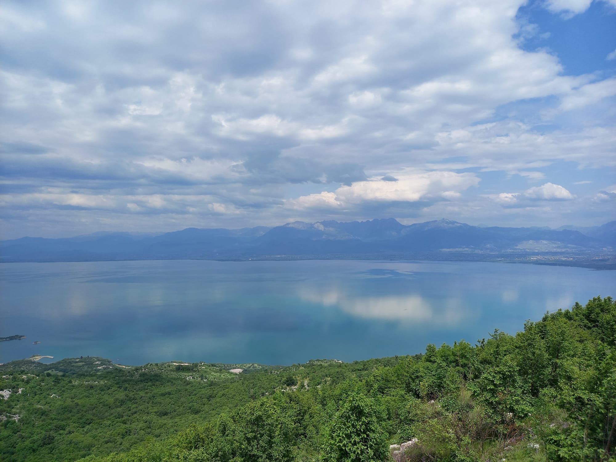 Bis Shkoder fahren wir mitten im Verkehr. Wo wollen die Albaner am Sonntag nur alle hin? Vielleicht ihr Auto waschen lassen? Dazu müssen sie nicht weit fahren. Alle 100m gibt es ein Zelt mit einem Hochdruckreiniger. Überall wird eifrig gesäubert. Was für eine Wasserverschwendung. Oder vielleicht machen einige auch einen Ausflug an den See. Dort wollen wir auch hin. Aber auf die Seite Montenegros. Dazu müssen wir erst einmal über die Grenze. Eine deutsche Zollbeamtin, die von Frontec nach Albanien zur Beobachtung der Grenzkontrollen entsandt wurde, beobachtet uns beim Flaggenwechsel. Sie informiert sich über unsere Reise. Ab der Grenze ist fast kein Verkehr mehr. Wir atmen auf und freuen uns über die grüne Landschaft mit kleinen Dörfern. Heute haben wir ein ganz besonderes Ziel. Der Skadar-See Nationalpark. Jedoch nicht ans Ufer, sondern ein paar hundert Meter weiter oben an einen Aussichtspunkt über dem See. Wir biegen auf eine kleine Bergstraße ab. Sie geht mit konstanter Steigung von mehr als 10 % immer weiter nach oben. Wir kämpfen mit unseren schweren Lasten und schwitzen. Den ersten Pass erreichen wir nach ungefähr anderthalb Stunden Bergfahrt. Wir schauen zurück auf Albanien und sagen Mirupafshim, auf Wiedersehen. Und schauen in Richtung Montenegro auf den Skadar-See und sagen Dobar dan, guten Tag. Was ist das für eine grandiose Aussicht? Wie wunderschön ist der See! Der Legende nach ist er aus den Tränen einer montenegrinischen Fee entstanden. Sein azurblaues Wasser ist auf jeden Fall wie im Märchen. In ein paar Wochen sind die Uferbereiche voller Seerosen. Dann werden die Tränen der Fee in Blumen umgewandelt. Wie toll muss das aussehen. Wir sind nun oben, müssen aber bis zu unserem Ziel noch mal hoch. Zwischendrin fahren wir zu einem Dorf ab. Es geht durch Kastanienwälder mit uralten Bäumen. Meterdicke Stämme aus knorrigem Holz sehen aus wie Fabelwesen. Der zweite Anstieg führt ebenso steil wie der erste an kleinen sauberen Dörfern mit Tabakfeldern vorbei. Dann durch ein Karstgebirge. Die Straße wird immer schmaler. Am Straßenrand blühen üppige Blumen. Wir sehen vielleicht fünf Autos. Wir sind fast allein in der Bergwelt. Am Viewpoint Livari haben wir eine kleine Holzhütte gebucht. Mit Aussicht. Und diese ist noch viel schöner als am Pass. Der ganze See mit seinen vielen kleinen Inseln liegt uns zu Füßen. Dahinter die schneebedeckten Grenzberge zwischen Albanien und Kosovo. Es gibt einen Imbiss, natürlich mit Aussicht, unser Abendessen ist gerettet. Die Familie, die Hütten, Camping und Restaurant betreibt, verlässt am Abend den Ort. Nur ein deutsches Paar mit Camper ist außer uns noch hier oben. Es ist absolut ruhig. Kein Hundebellen, kein Verkehrslärm, noch nicht einmal Hühner gackern. Auch die vielen Schwalben haben sich in ihre Nester begeben. Wir sitzen da und genießen. Montenegro ist wunderschön.