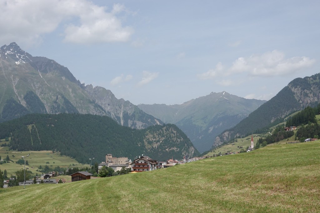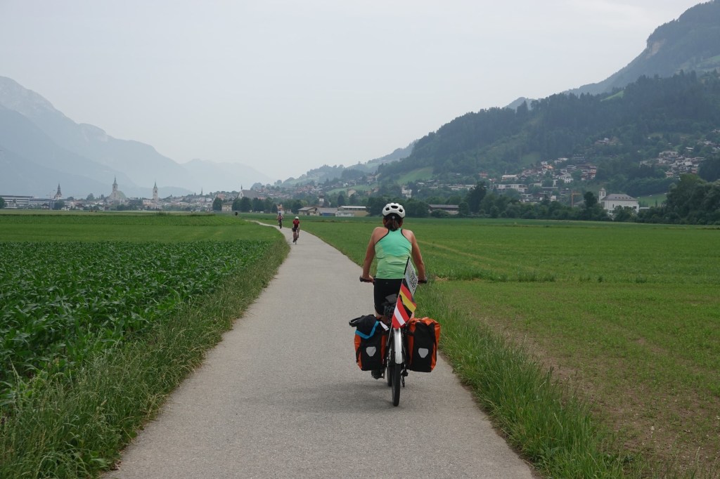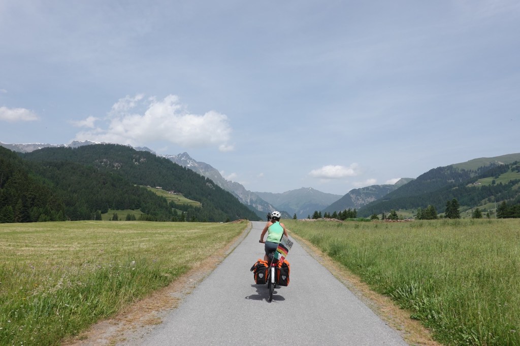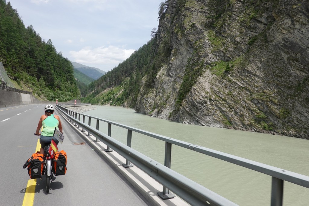 20 km rollen wir bequem durchs Inntal. Dann geht es bergauf. Unser letzter Pass in den Alpen. Es ist direkt sehr steil. Wir nehmen den Radweg, nicht die Passstraße. An einer Baustelle sind die Arbeiter wenig kooperativ. Sie lassen uns nicht durch. Wir müssen über Umwege zurück. Noch mehr Höhenmeter.
