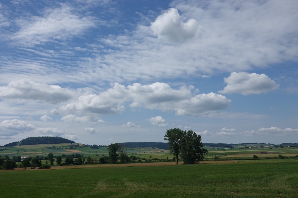 Der Blautopf am Fuße der Schwäbischen Alb gilt als eine der schönsten Karstquellen Deutschlands. An seinem Grund in 22 m Tiefe beginnt ein riesiges Höhlensystem. Das intensive Blau entsteht durch Lichtbrechung. In dem tiefen Wasser werden die langwelligen Lichtfarben verschluckt. Nur das kurzwellige Blau bleibt sichtbar und wird noch durch Kalkpartikel verstärkt. Reinspringen bei der Hitze wäre toll. Ist natürlich verboten. Also weiter. Kurz vor dem Campingplatz gibt es noch eine Erfrischung: Eis vom Bauernhof und kaltes Wasser am Brunnen. Der Radlerzeltplatz ist auch beim Bauern. Wir sind die letzten, die dort ihr Zelt aufbauen. Nur noch zwei Etappen bis zum Zwischenziel.