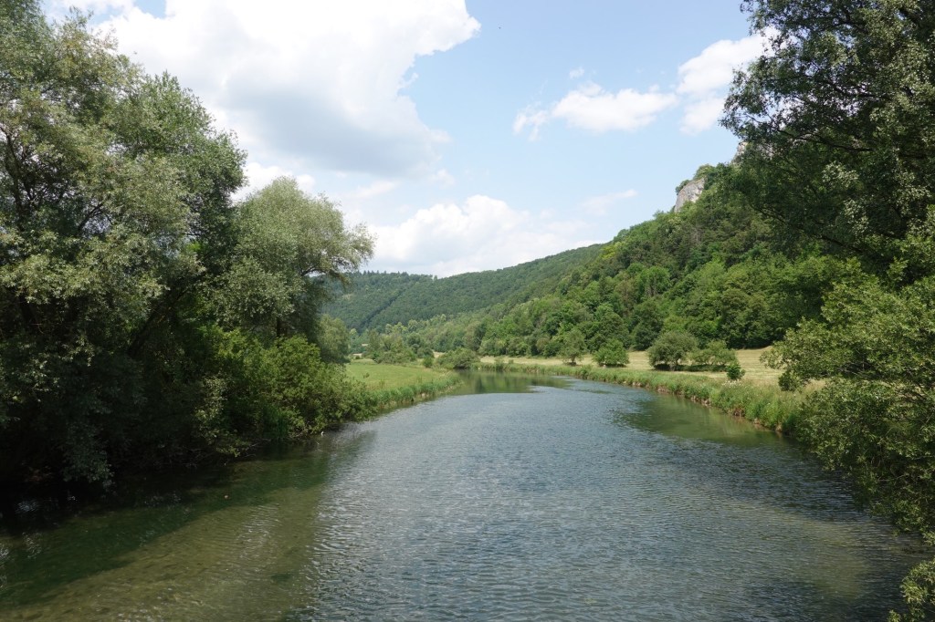 Über 100 km sind es wieder. Mit einigen Anstiegen und Gravelpassagen am Donauradweg. Hinter Sigmaringen entscheiden wir uns für die Landstraße nach Beuron. Auf dem Radweg sind wir zu langsam. Eine gute Entscheidung. Die Straße ist wenig befahren und wunderschön. Wir genießen die Landschaft im oberen Donautal mit den steilen Kalkfelsen links und rechts. Nach dem Kloster Beuron geht es wieder auf den Radweg. Bis zur Donauversickerung in Immendingen. Dort ist ein Zeltplatz nur für Radler. Morgen schaffen wir es in den Schwarzwald.