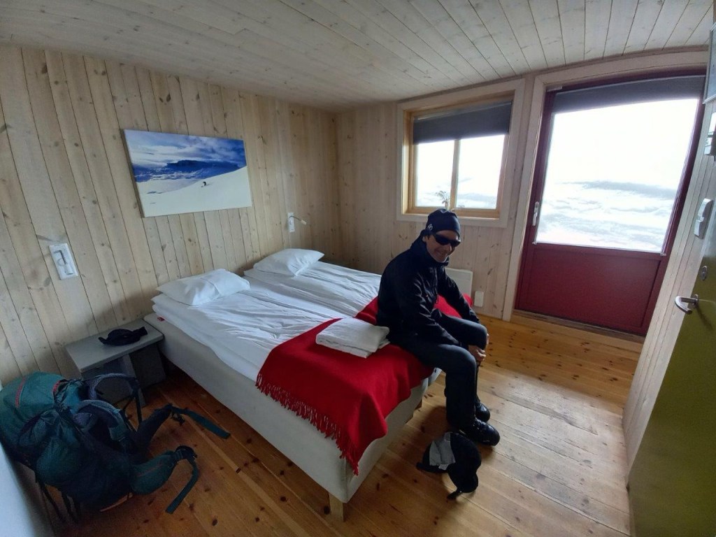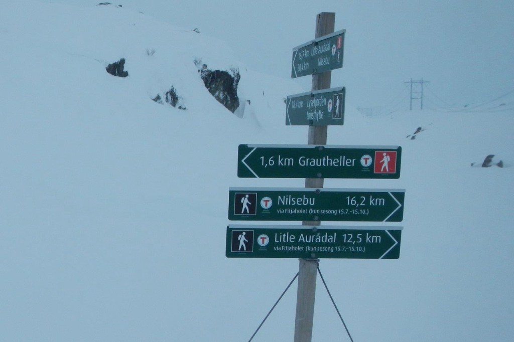In der Fjellstue gibt es preiswerte Lager und teure Hotelzimmer. Wir gönnen uns ein Zweibettzimmer mit eigenem Bad. Nach 10 Tagen ist die erste Dusche purer Luxus. Wir ziehen frische Kleider an und essen im Restaurant. Auch das ist Luxus. Aber es ging auch 10 Tage ohne Dusche. Und die Vorräte aus den Provianträumen in den Selbstversorgerhütten (Ubetjent) haben wir jeden Tag anders variiert. Jetzt hat uns mitten in den Bergen auf 980m Höhe die Zivilisation wieder. Denn Haukeliseter liegt an einer Straße, die quer durch das Fjell führt. Sie verläuft nach Westen in Richtung Stavanger und nach Süd-Osten in Richtung Oslo. Wir haben gelesen, dass sie zu den gefährlichsten Straßen der Welt zählt. Im Winter sicherlich.