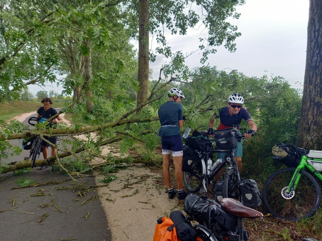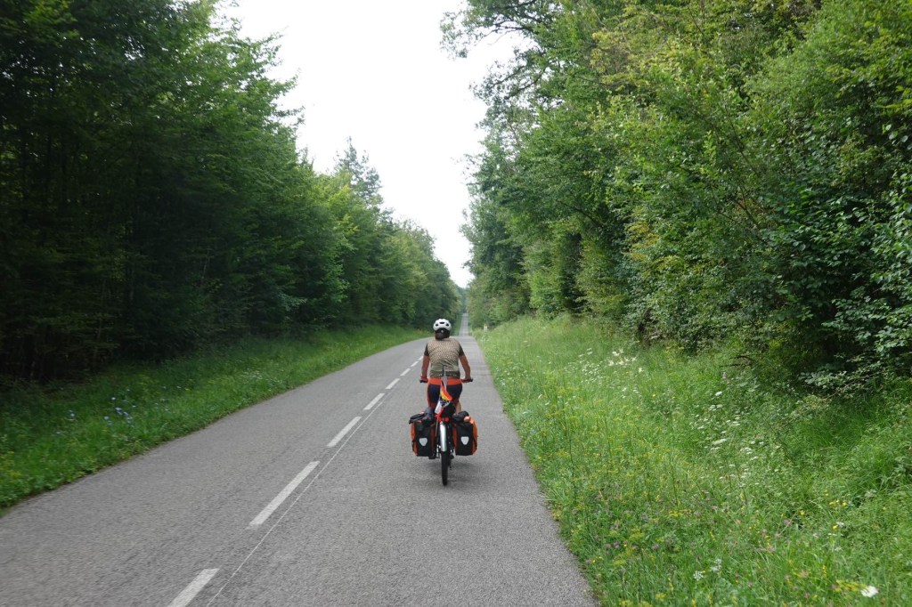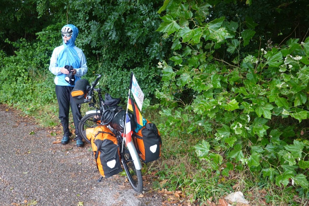Heute soll es den ganzen Tag gewittern. Beim Losfahren ist es noch trocken und sehr warm. Nach 15 km das erste Gewitter. Wir stehen unter einem Baum und ziehen die Regensachen an. Nun werden wir von innen und außen nass. Es dauert nicht sehr lange. Wir suchen uns für unsere Mittagspause einen Schattenplatz. Leider kommen nachmittags die Gewitter zurück. Auf den letzten 20 km bis zum Schlosscamping in Bar-le-Duc werden wir so richtig nass. Die französischen Campingplätze sind auch für Radreisende ausgestattet. Es gibt überdachte Sitzplätze und wir können im Regen kochen. Kaum liegen wir im Zelt schreit Sabine auf. Sie hat sich total erschrocken. Irgendetwas oder irgendwer ist direkt neben ihr auf das Zelt gefallen. Und es gab einen lauten Knall. Eventuell ist jemand über unsere Zeltschnur gefallen und hat sich neben Sabines Kopf auf der Zeltwand abgestützt. Erst am nächsten Morgen stellen wir fest, woher der Knall kam. Eine Kammer von Sabines Isomatte ist geplatzt. Und undicht ist sie auch. Irgendwo müssen wir nach einer neuen schauen.