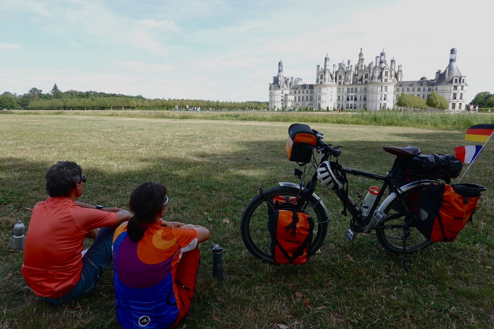 Von Orléans geht es in Richtung Blois mit einem Umweg über Chambord. Unser erstes Loire-Schloss. Wir genießen den Blick auf das Schloss bei einem Picknick. Ins Innere wollen wir nicht. Kurz vor Blois ist ein riesiger Campingplatz. Er ist fast voll besetzt. Unzählige Radreisende haben ihre bunten Zelte aufgebaut. Wir essen zusammen mit einem Paar aus Sélestat im Elsass zu Abend. Wir erzählen ihnen vom Hintergrund unserer Reise nach Marokko. Sie spenden uns spontan einen größeren Betrag für die Erdbebenopfer. Total nett.