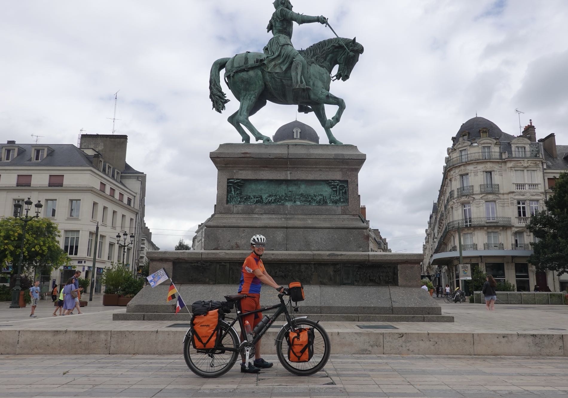 Heute sind wir endlich auf dem Loire-Radweg, Loire à Vélo, er ist super beschildert und gut ausgebaut. Wenn auch oft unbefestigt. Ganze Familien sind hier unterwegs. Mit voll beladenen Anhängern und vielen kleinen Kindern. Die Kleinsten geben das Tempo an. Die Eltern müssen viel Geduld haben. Unser erster Stopp ist Orléans. Wir fragen einen netten Franzosen nach dem Weg zur Kathedrale. An der Brücke rechts und dann geradeaus auf die Jeanne d’Arc zu und dann wünscht er uns eine gute Reise nach Marokko. Die Jungfrau von Orléans ist nicht zu verfehlen. Sie sitzt auf einem riesigen bronzenen Pferd. So groß muss sie auch sein, die mutige Kämpferin für Liberté, Égalité und Fraternité. Freiheit, Gleichheit, Brüderlichkeit, die Ziele der Französischen Revolution. Und die Vorreiter der Demokratien in Frankreich und Europa. Sollten sich doch die Franzosen (und andere Staatsvölker) diese Prinzipien vor Wahlen noch mal bewusst machen. Die Kathedrale gehört zu den schönsten und größten in Frankreich. Wir werden noch einige sehen.