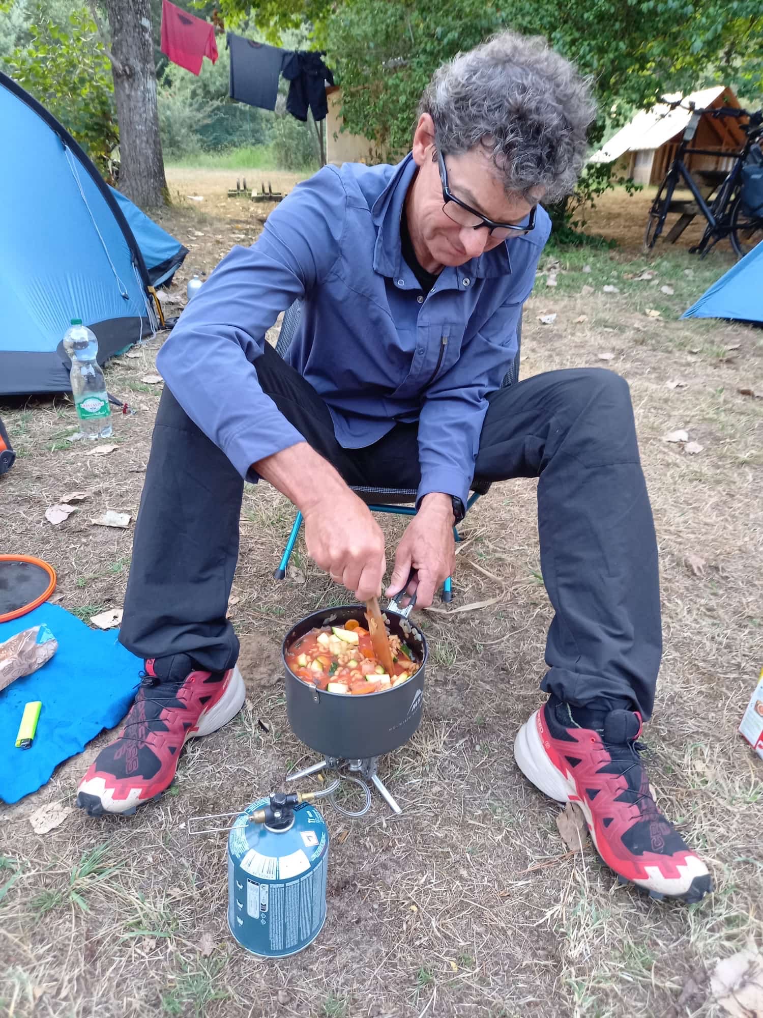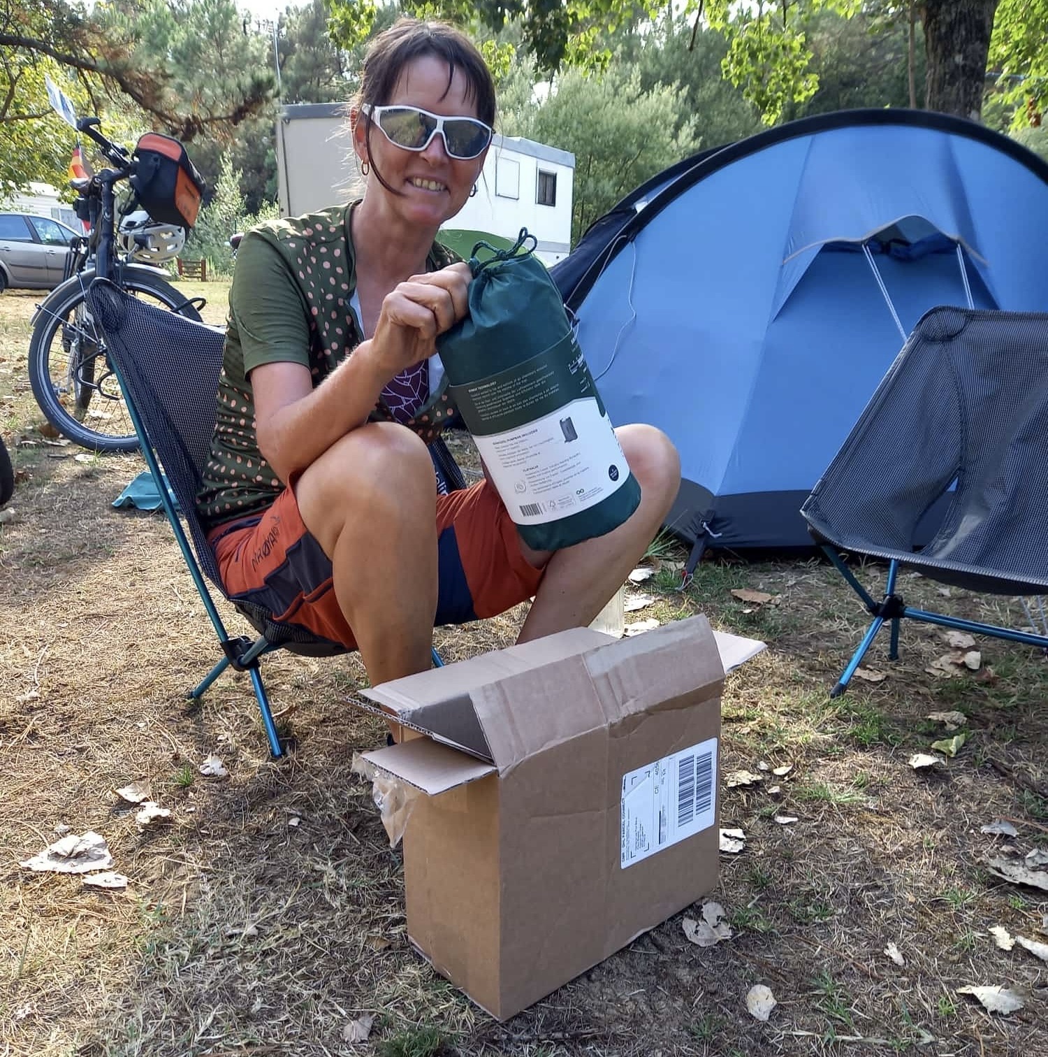 Unseren heutigen Campingplatz haben wir vor einigen Tagen reserviert. Sogar zwei Nächte. Wir haben Sabines neue Isomatte online dort hin bestellt. Es hat geklappt. Sie war schon vor uns da und liegt an der Rezeption. Der nette Mann dort schlägt uns einen anderen Platz als den reservierten vor. Es gibt spezielle Plätze für Vélodyssée, mit Bänken, Kühlschrank und Mikrowelle. Für ein Drittel des regulären Preises. Hier sind die Radfahrer unter sich. Sehr nett. Wir wollen zwei Tage bleiben, obwohl die Isomatte schon da ist. Wir müssen die Strecke in Spanien planen.