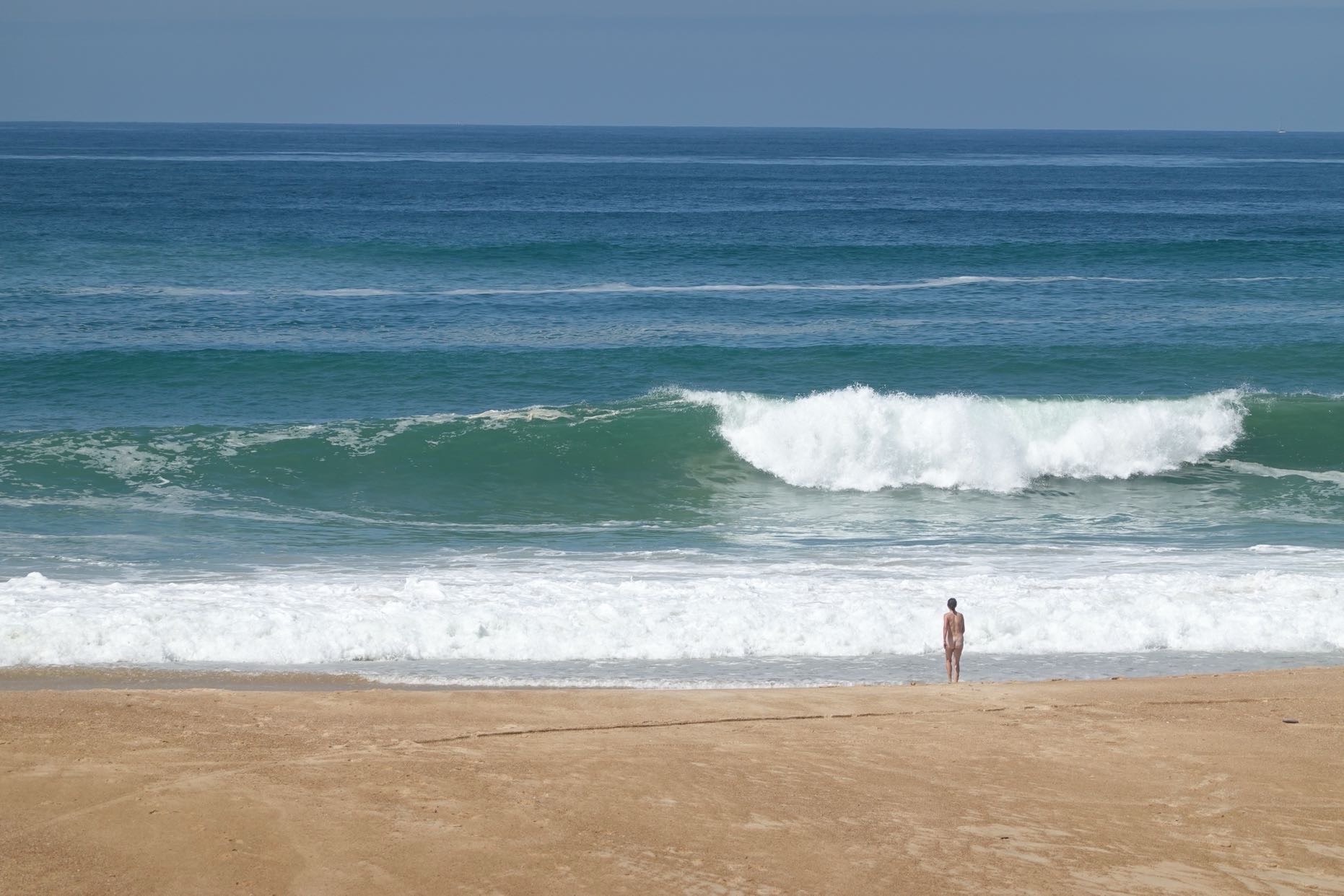 Stefan, ein deutscher Radfahrer, kennt beides und empfiehlt die Inlandsstrecke. Wir sind hin-und hergerissen. Zuerst gehen wir mal zum Strand. Zum letzten Mal im Meer baden. Eventuell bis Portugal. Die Wellen sind meterhoch. Dann entscheiden wir uns für den Camino Frances. Morgen geht es nach St. Jean-Pied-de-Port, dem Start des Haupt-Jakobsweges. Wir pilgern ab dort mit dem Rad.