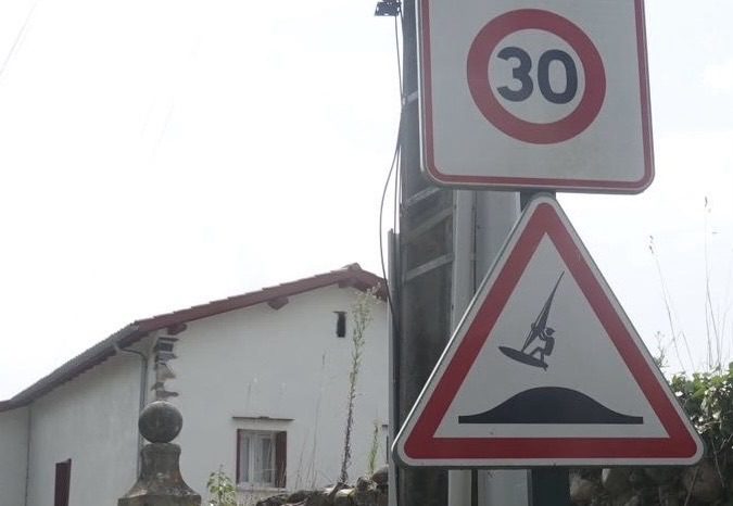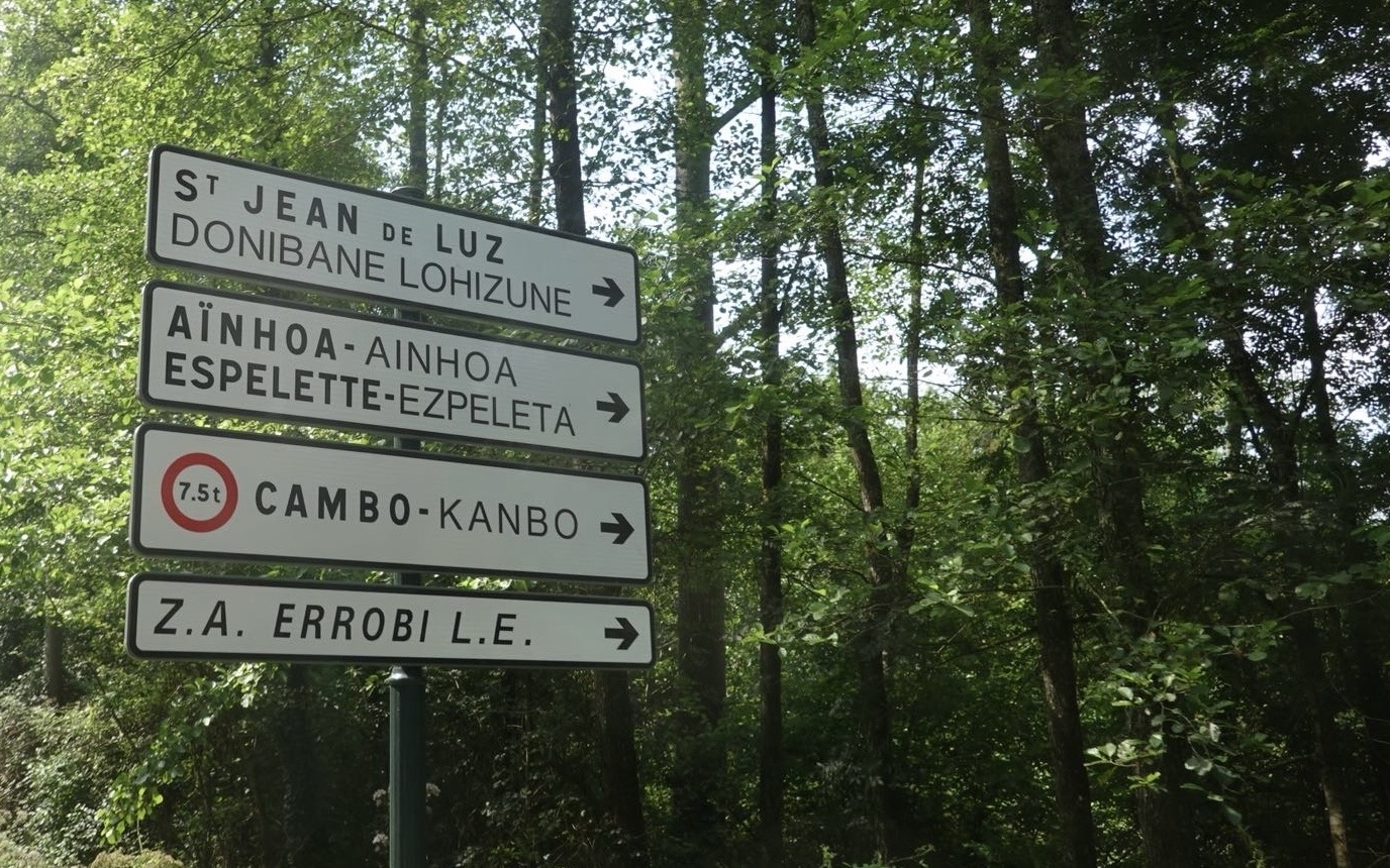 Nach der Stadtdurchfahrt von Bayonne verlassen wir die Küste. Zuerst flach an dem Fluss Nive entlang. Links und rechts sehen wir die ersten Hügel des Baskenlandes. Es sind die ersten Berge seit dem Halberg in Saarbrücken. Der Radweg endet und wir müssen über die steilen Hügel. Vorbei an Peperoni-Feldern, die von weitem wie Weinberge aussehen. Hier wird der Grundstoff für das berühmte Gewürz Piment d´Espelette, eine Art Chili, angebaut. Die Stadt Espelette oder Ezpeleta ist ganz in der Nähe. Klaus findet einen tollen Radweg durch eine Schlucht. Leider führt er über einen Pass mit 12 bis 18% Steigung. Wir kämpfen und schwitzen. Das sind wir nicht mehr gewohnt. Schließlich nehmen wir die Route National. Es gibt fast immer einen Seitenstreifen. Und wir haben starken Rückenwind. So schaffen wir es gerade noch in St. Jean-Pied-de-Port unser Zelt aufzubauen. Vor dem Gewitter mit starken Sturmböen. Es dauert nicht so lange.