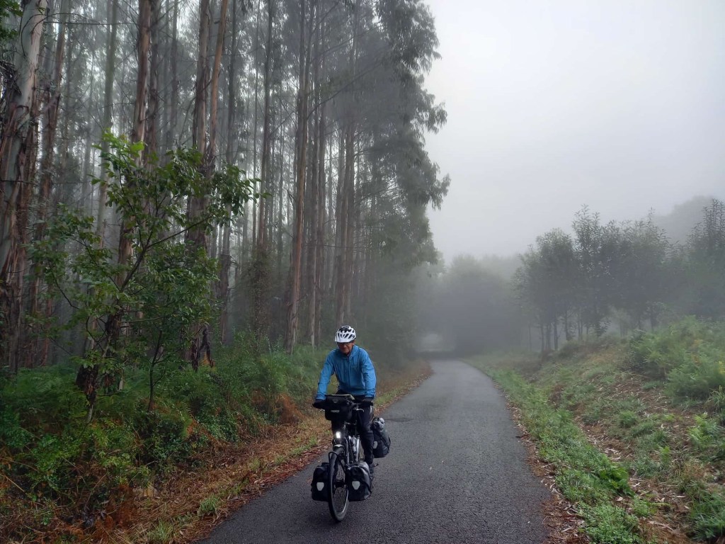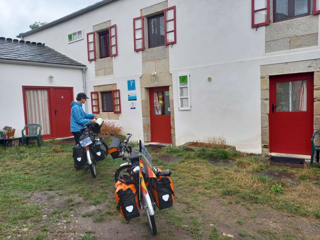 Gleich am Morgen gibt es eine Überraschung. Die Australierin aus Sydney spendet uns 50 Euro für unser Hilfsprojekt. So spontan und so nett. Pilgern öffnet die Herzen. Wir haben heute unseren letzten Pilgertag. Sabine überlegt sich oft schon während dem Rad fahren Textbausteine und Überschriften für unseren Blog. Zuerst fällt ihr ein: Wellenreiten. Denn wir fahren über viele Wellen, hoch und runter. Dann auf Nebenstraßen kurvig durch Dörfer und Wälder. Die letzten 100 km ist passender. So weit ist es heute noch bis Santiago de Compostela. Dort wo alle Pilgerwege enden. Mit dem Rad gut zu schaffen, trotz vieler Höhenmeter in hügeligem Gelände. Die Fußpilger brauchen dazu noch 4 bis 5 Tage.