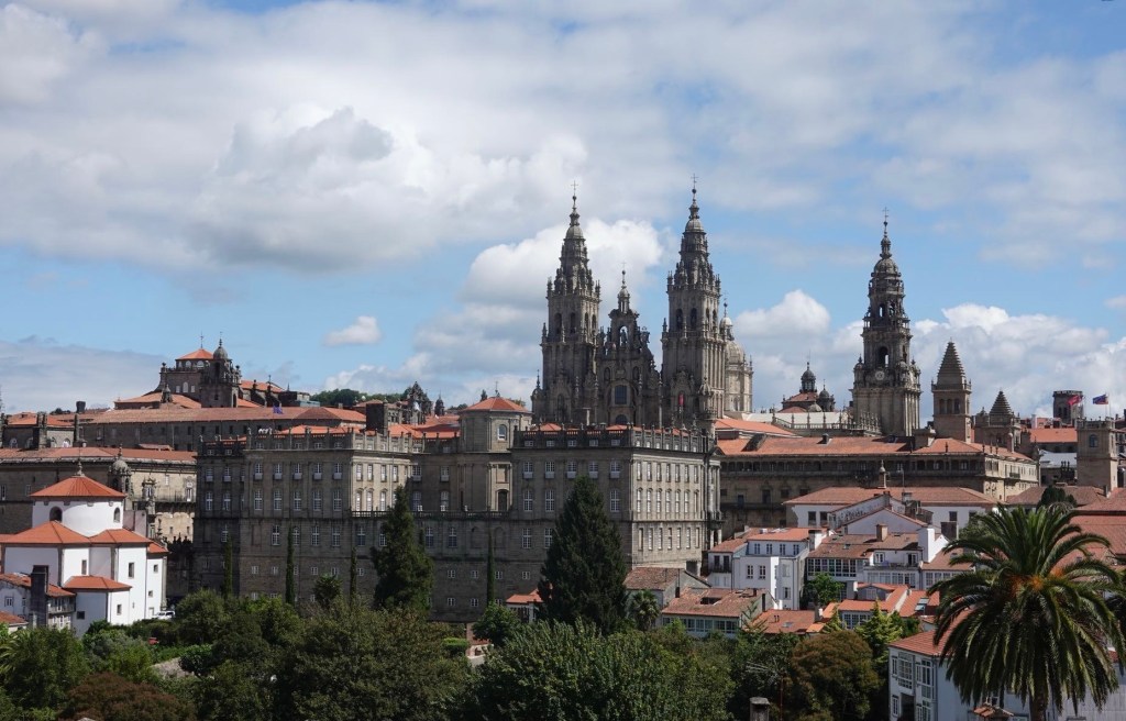 Nach dem Gottesdienst bummeln wir durch die Stadt. Unsere Compostela wollen wir noch im Pilgerbüro abholen. Unsere Urkunde, die uns als echte Jakobspilger ausweist. Pilger von zuhause bis Santiago. 2915 km Strecke. Leider steht die Kilometerzahl nicht auf der Urkunde. Die letzten 200 km hätten grundsätzlich auch gereicht. Und wir sind noch nicht fertig. Wir fahren morgen doch noch in Richtung Finisterra, dem (fast) westlichen Ende Spaniens. Dann geht es den portugiesischen Jakobsweg rückwärts. Der Pilgerweg bleibt uns noch einige Zeit erhalten.