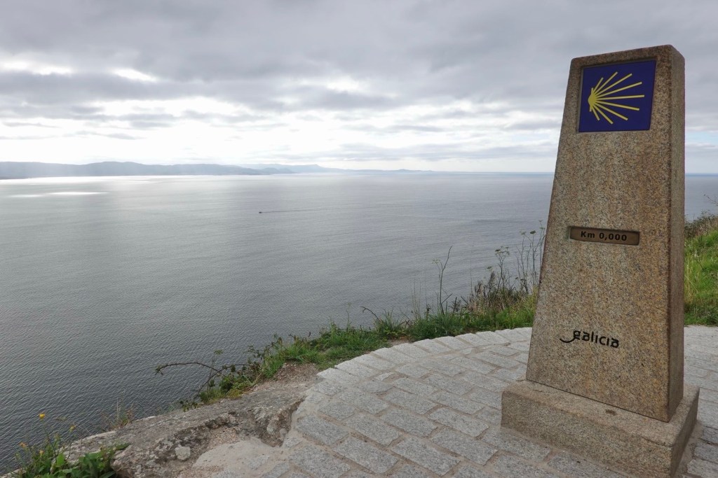 Den Westen haben wir jetzt ausgereizt. Wir sind am Cap Finisterra, dem (fast) westlichsten Punkt Spaniens. Insgesamt sind wir bisher mehr Kilometer nach Westen als nach Süden gefahren. Vor uns ist nur noch der Atlantik. Bis Amerika. Das letzte Kilometerschild des Camino zeigt 0,000 km an. Ab hier geht es für uns südwärts. Wir genießen den Weitblick und fahren zurück zum Campingplatz. Unser Gepäck haben wir noch dort gelassen. Es geht weiter an der Küstenstraße. Erst durch ein paar hässliche Städte, dann durch Dörfer, in denen nichts los ist. Auf und ab. Viele Höhenmeter. Meistens haben wir den kräftigen Wind im Rücken.