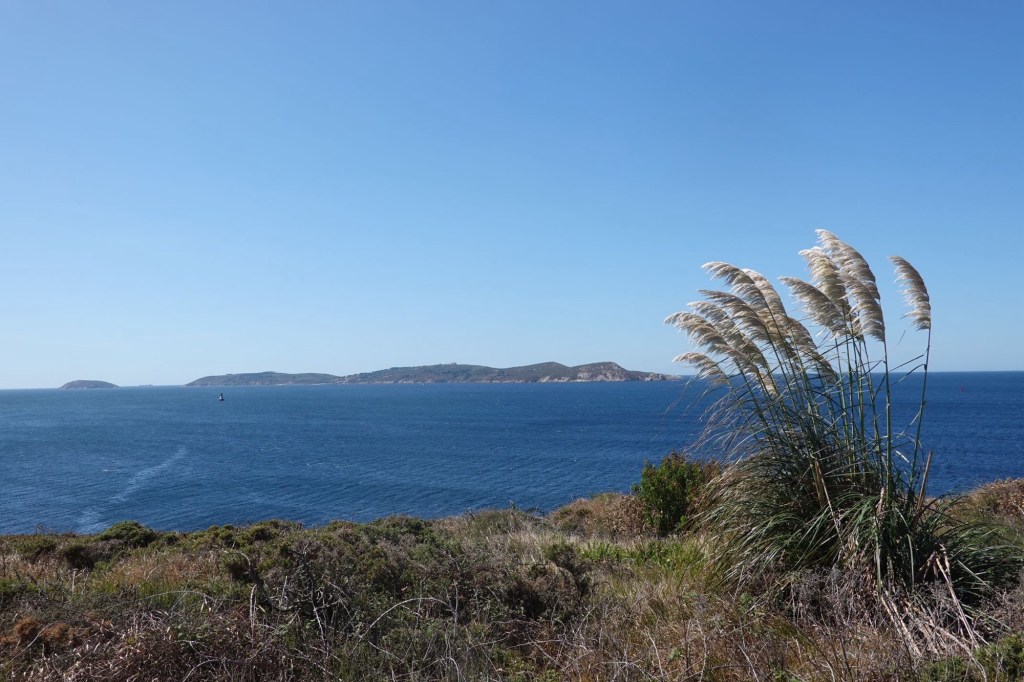 Wir wandern an der Steilküste entlang. Mit Blick auf Inseln und lange Sandstrände. Es ist wieder sehr warm. Bestimmt 26 Grad. Badewetter. Das Wasser an einem von Felsen umrahmten Sandstrand ist türkisblau. Die Wellen sind moderat. Schöner kann es nicht mehr sein, im Meer zu baden. Wenn die Wassertemperatur nicht wäre. 15 Grad, mehr sind es nicht. Es ist fast schon wie Eisbaden. Schnell rein in die Wellen. Es kribbelt am ganzen Körper. Doch Eisbaden soll ja auch gut für müde Muskeln sein. Am Strand ist uns dann gleich wieder warm.