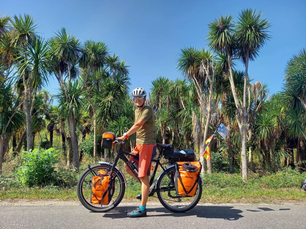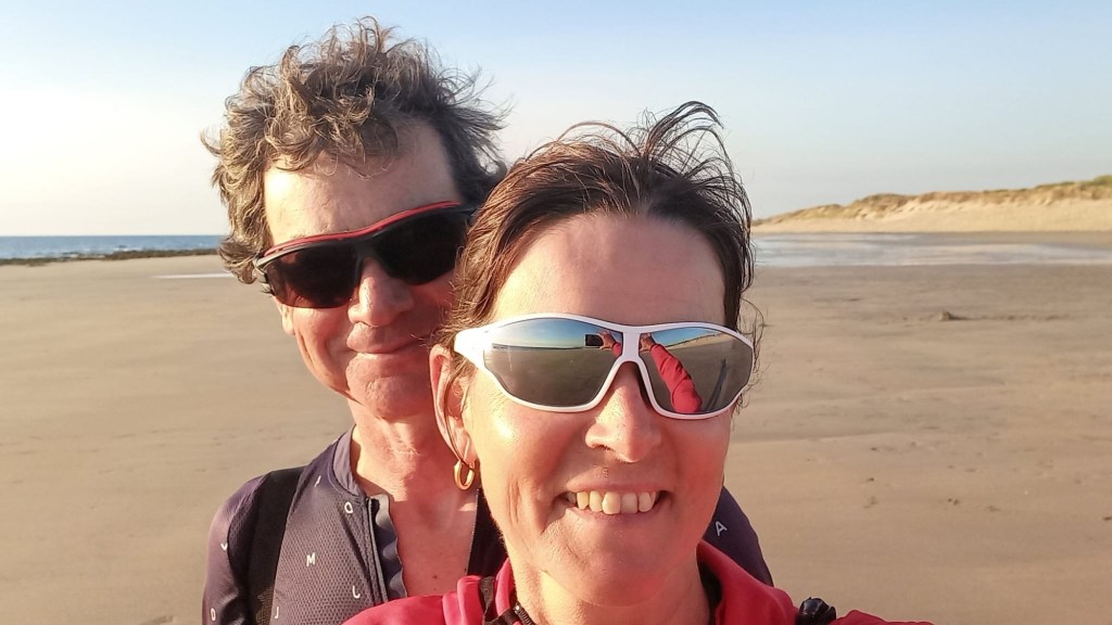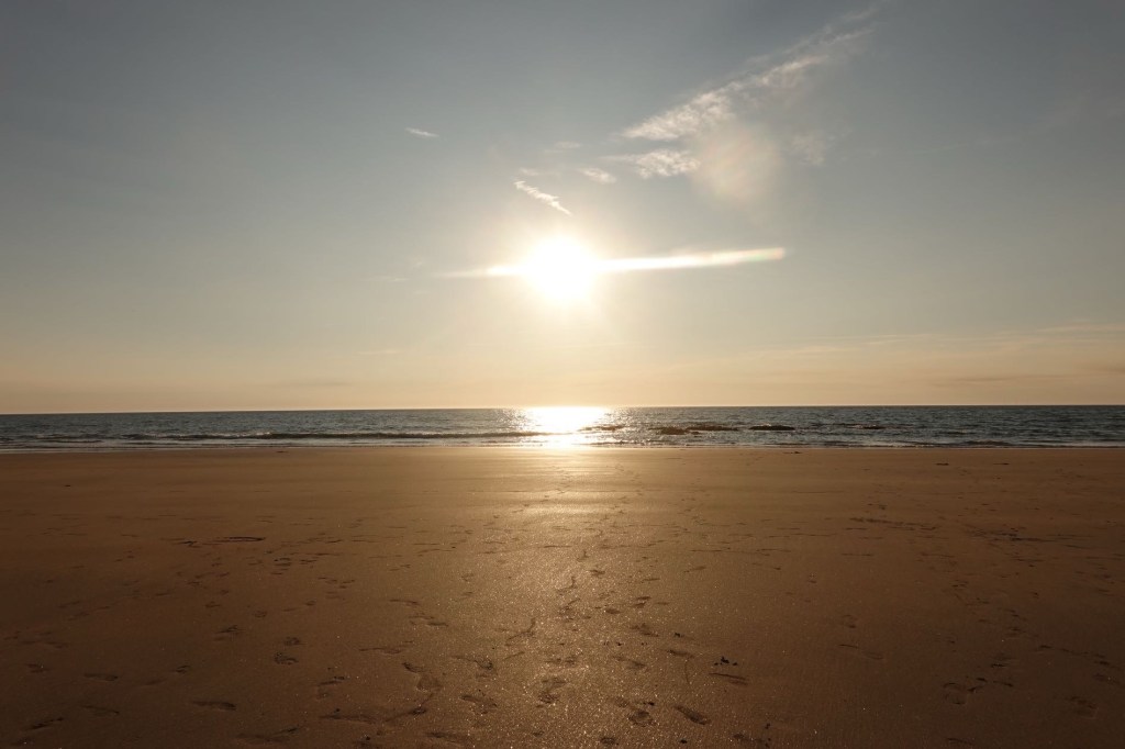Es ist heiß. Über 30 Grad in der Sonne. Zum Campingplatz wollen wir den direkten Weg fahren. Doch wir kehren schnell wieder um auf die Hauptstraße. Alle Nebenstraßen sind gepflastert, mit unebenem schlecht verlegten Kopfsteinpflaster. Die letzen zwei Kilometer haben wir es dann doch noch. Der Campingplatz liegt an einem langen Strand mit Dünen in einem Naturpark. Drei weitere Radreisende sind hier. Eine junge Frau aus Freiburg, die auch von zuhause bis hierher gefahren ist. Und ein deutsch-französisches Paar mit einem Katzenbaby. Sie haben es am Straßenrand gefunden und adoptiert. Es fährt jetzt mit.
