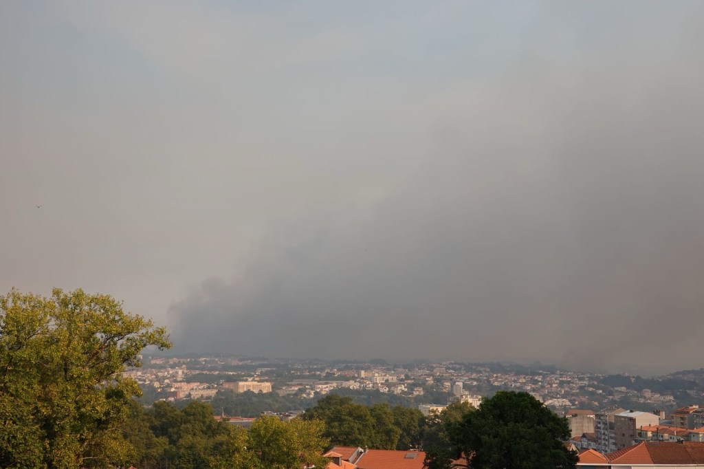 Wir haben die Wahl: Hauptstraße mit viel Verkehr oder Kopfsteinpflaster auf Nebenstraßen. Wir wollen bis Porto. Die Stadtdurchfahrt bis zum gebuchten Apartment wird wahrscheinlich auch nicht einfach. Porto liegt auf verschiedenen steilen Hügeln. Deshalb geben wir erst mal Gas auf der Landstraße. LKWs düsen an uns vorbei. Es ist kein angenehmes Rad fahren. Dann nimmt uns eine Rauchwolke auch noch die Luft zum Atmen. Es hat gebrannt. Im Eukalyptuswald. Die öligen trockenen Bäume brennen wie Zunder. Der starke Ostwind und die Hitze von 35 Grad fachen das Feuer noch an. Und die Rauchwolke zieht in Richtung Meer. Später ist wieder blauer Himmel. Dafür nimmt der Straßenverkehr zu.