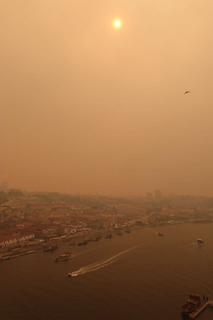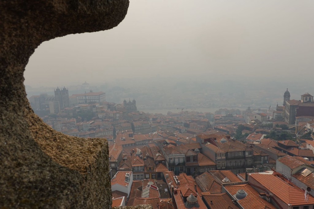 Porto ist im Nebel, nein im Rauch. Die Sonne ist verschwunden. Der Himmel ist rötlich grau statt blau. Es stinkt verbrannt. Viele Menschen tragen Masken. Trotzdem ist viel los in der historischen Altstadt Portos. Sie ist UNESCO Weltkulturerbe. Wegen dem Ensemble aus Jugendstilgebäuden mit bunten Fliesen, trotz der vielen unbewohnten zerfallenen Häuser. Und wegen der pittoresken Lage am Rio Duoro, mit den sechs 60 m hohen Brücken, die zwei Städte miteinander verbinden. Darunter die Ponte Dom Luis I. Sie wurde 1886 von einem Schüler Gustave Eiffels als Stahlbrücke im Stil des Eiffelturms gebaut. Die 385 m können Fußgänger auf der unteren Fahrbahn überqueren oder auf der 60 m hohen neben den Schienen der Metro. Der Blick auf die beiden Städte ist beeindruckend.