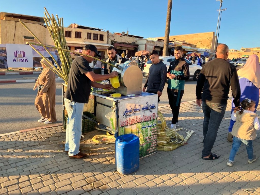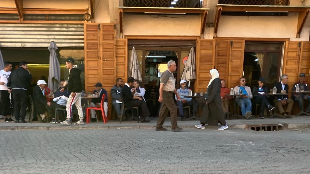 Wir besichtigten das Mausoleum, das Grabmal des ehemaligen Herrschers Moulay Ismails. Sogar in die angeschlossene Moschee dürfen wir rein. Sehr imposant und prunkvoll. Die Medina erstaunt uns. Sie ist in einem einheitlichen Stil erhalten und eher ruhig. Hier leben die Menschen noch in traditioneller Art und Weise. Die Souks sind voller Menschen. Aber kaum von Touristen besucht. Hier gehen die Einheimischen einkaufen. Vor allem Textilien, Schuhe, Obst und Gemüse, aber auch Kunsthandwerk, Haushaltswaren… Alles was fürs tägliche Leben gebraucht wird. Touristische Souvenirs gibt es kaum. Es ist mächtig was los. Scheinbar geht ganz Meknès heute Nachmittag shoppen. Der Hauptplatz der Medina der Place El Hedim füllt sich am Abend. Es gibt Gaukler, Geschichtenerzähler, fliegende Händler und Essensstände mit teilweise für uns exotischen Snacks. Wir haben uns entschieden, in unserer Unterkunft zu essen. Das ist besser für empfindliche europäische Mägen. Die Frau des Nachtportiers kocht für nur uns ein typisches marokkanisches Menu mit Tajine nach Meknès-Art. Lecker!