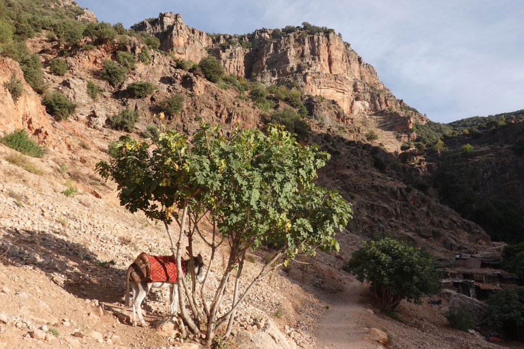 Oberhalb der Quelle ist unsere einfache Auberge. Wir duschen uns den Staub von Haut und Haaren und gehen zur Quelle. Mächtig viel Wasser strömt hier. Leider ist der reißende Fluss völlig zugebaut mit kleinen Hütten und Terrassen. Besucher können dort direkt am Fluß Tee und Tajine genießen. In Souvenierläden gibt es allerlei Kitsch. Viele Menschen versuchen hier irgendwie Geld zu verdienen. Der Besuch einer Hütte mit Plumpsklo kostet 2 Dirham, einer Grotte, einem Loch im Fels, 5 Dirham. Da investieren wir unsere 5 Dirham sinnvoller und kaufen bei einer Frau ein Fladenbrot direkt aus dem Lehmofen. Es schmeckt super. In unserer Auberge hören wir die ganze Nacht den mächtigen Fluß rauschen. Sonst nichts. Die vielen Besucher haben diesen bedeutenden Ort schon längst verlassen.