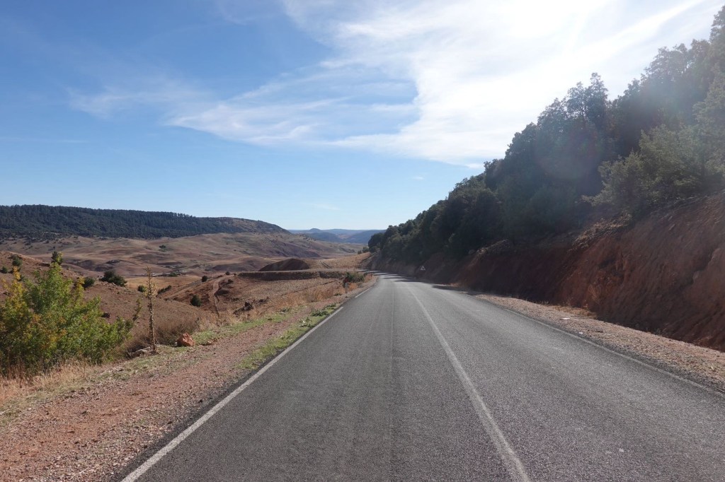 Was wir gestern runter gefahren sind, klettern wir heute wieder rauf. Aber dann ist es wunderschön. Wir sind auf einer kurvenreichen Panoramastraße. Durch Eichen und Zedern haben wir immer wieder tolle Blicke über ein breites Tal und Berge. Hier fahren so gut wie keine Autos. Es gibt wieder nur Affen und ein paar arme Hunde. Plötzlich sehen wir am Himmel hunderte Adler über uns hinweg fliegen. Alle fliegen in die gleiche Richtung. Viele kreiseln, um Höhe zu gewinnen. Viele sind so niedrig, dass wir ihre weißen Schnäbel und Köpfe und das schwarz-graue Gefieder gut erkennen können. Es ist ein atemberaubendes Erlebnis. Sabine steht da und hat Gänsehaut. Die Adler sind wie die Störche auf ihrem Weg in den Süden. Wir stehen minutenlang da und staunen. Bis sie über die Berge verschwinden.